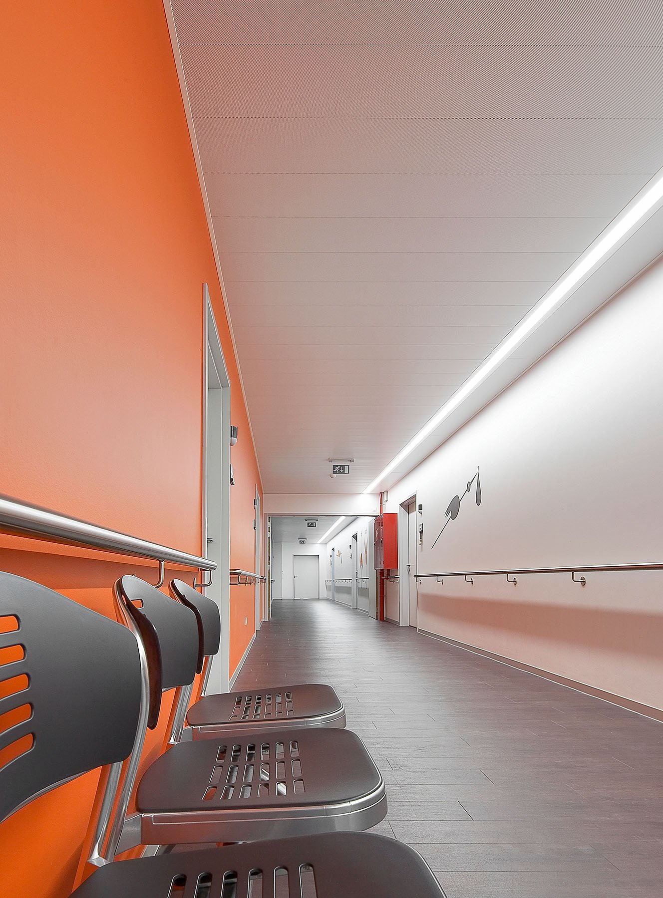 The concept is further characterised by low installation costs and an almost unlimited architectural freedom of design: available in your choice of ceiling modulation, panel measurements, colours, materials, perforation and integration of technical elements (for example, lighting, loudspeakers, sprinklers, etc.)