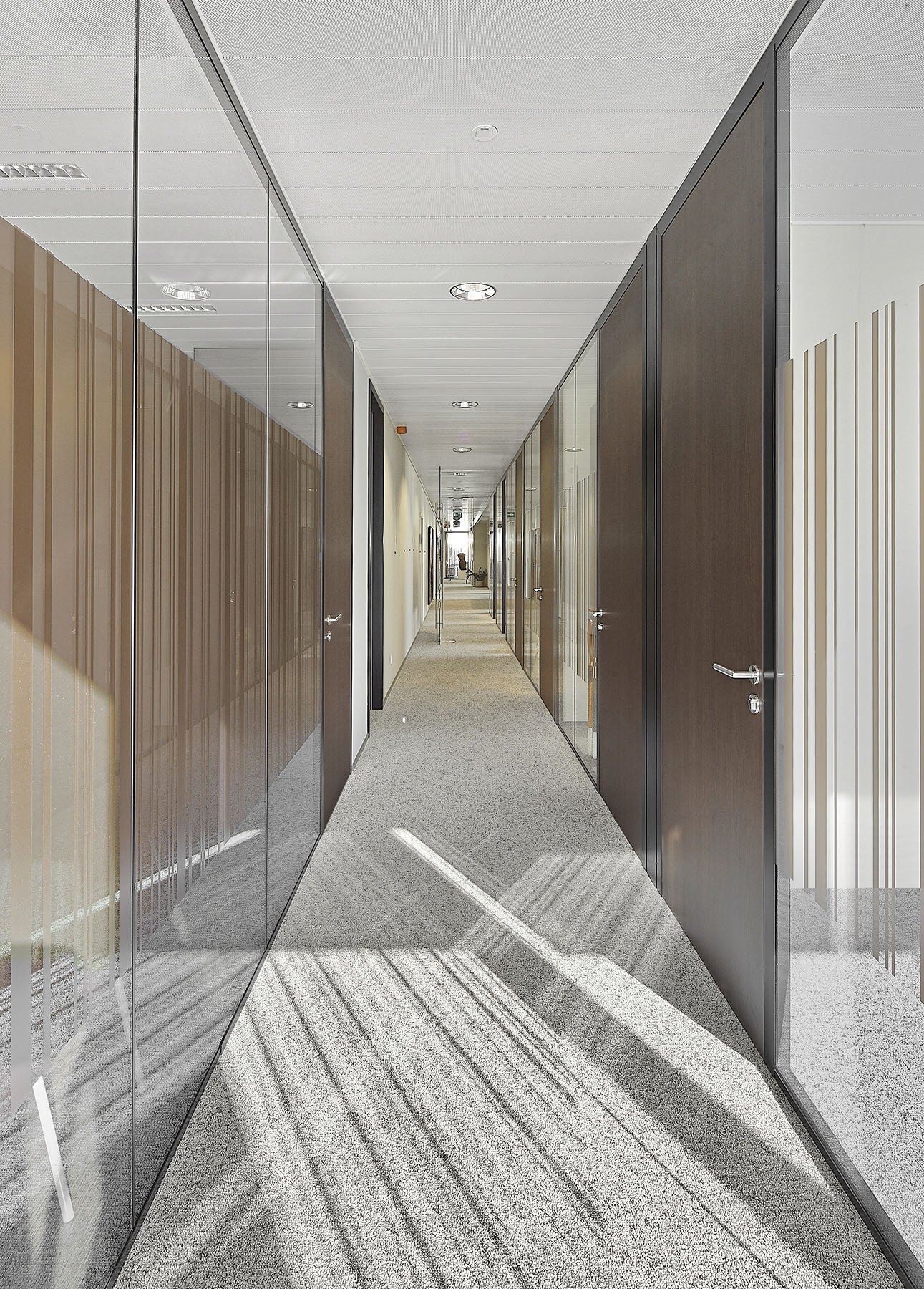 Pour ce projet, Beddeleem a livré des systèmes de cloisons en verre JB PURE, des sols surélevés avec tapis, du mobilier, des cloisons en plaques de plâtre fixes, un système de pare-soleil et les techniques.