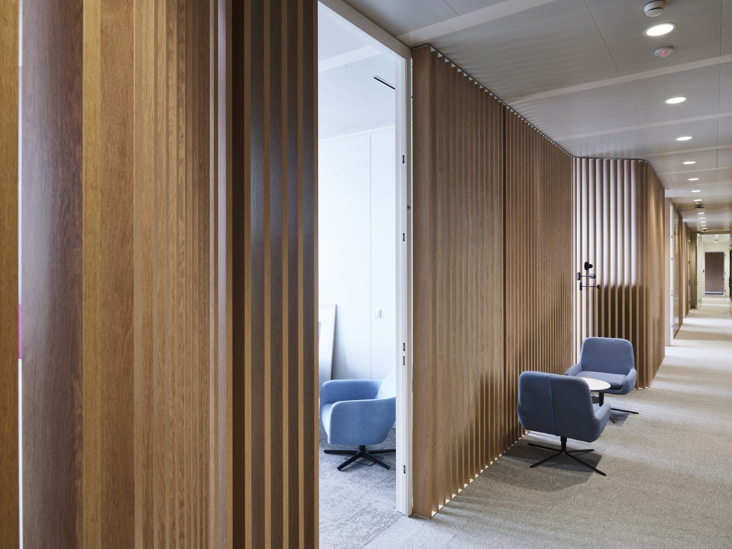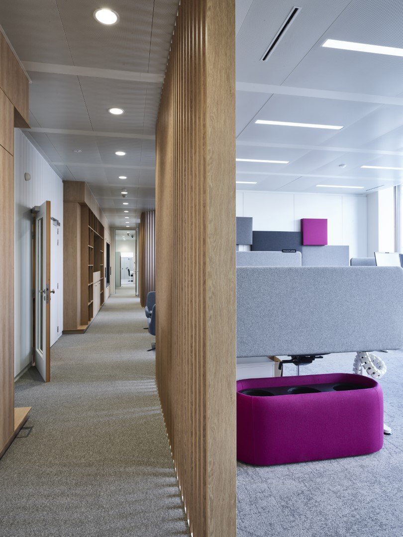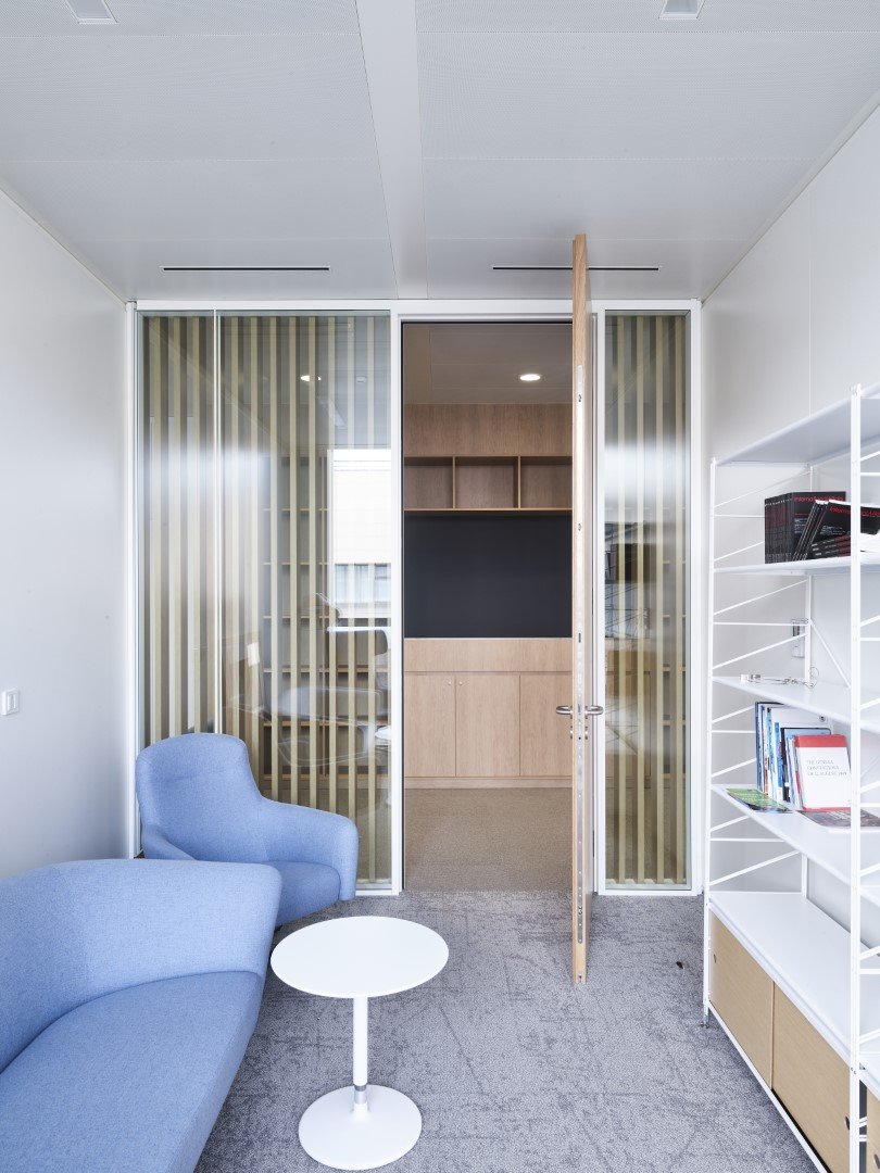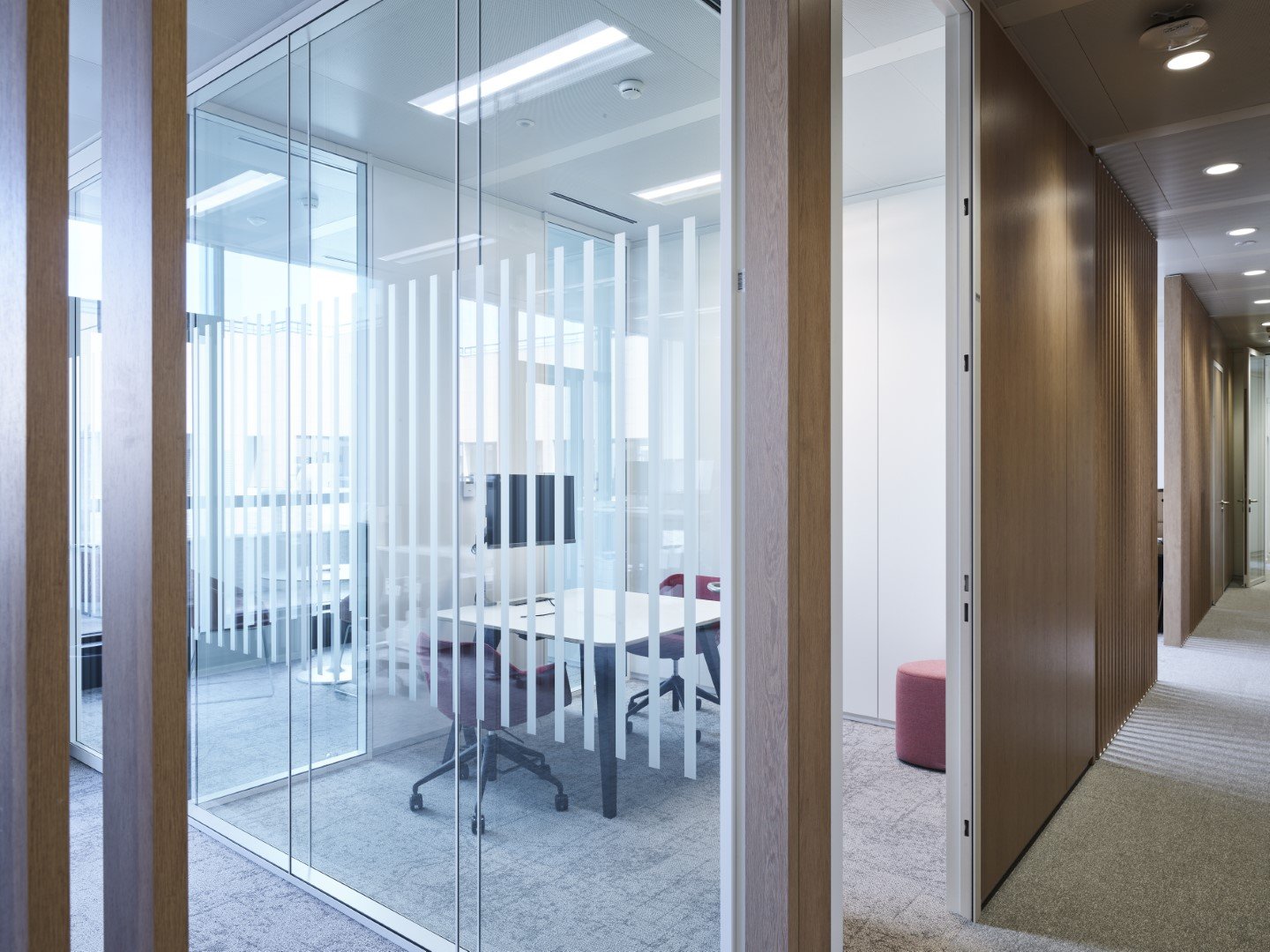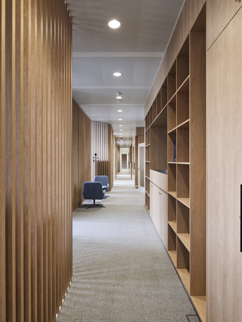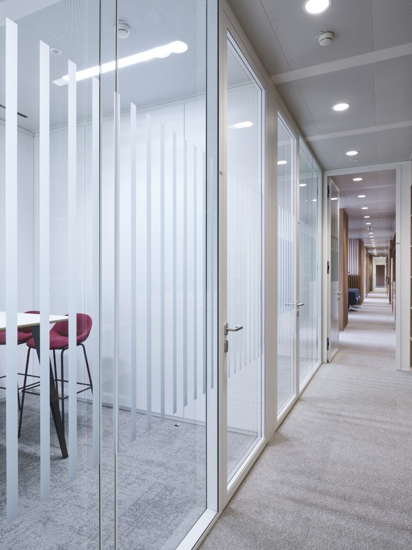 Lors de l'aménagement des bureaux de l'un des bâtiments du Conseil de l'Union européenne, les cloisons amovibles JB PURE 100 ont été combinées avec des séparations visuelles JB WOOD CLAUSTRA avec finition stratifiée.