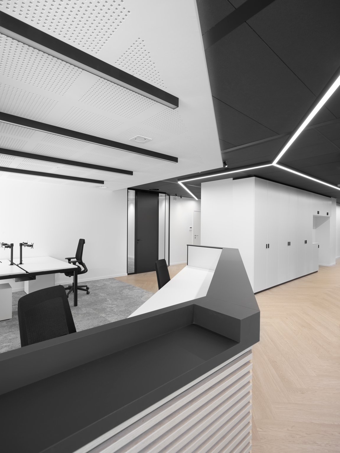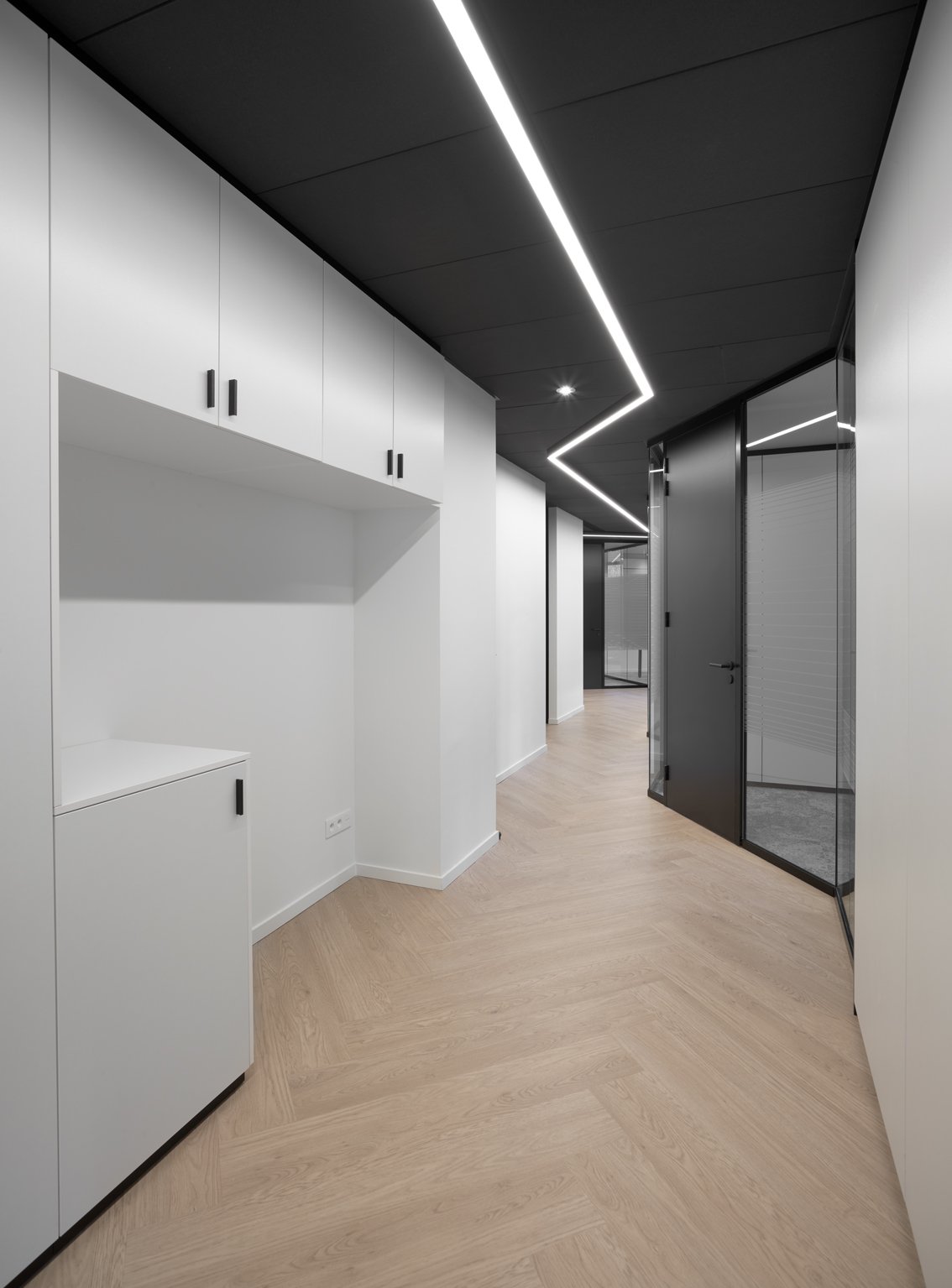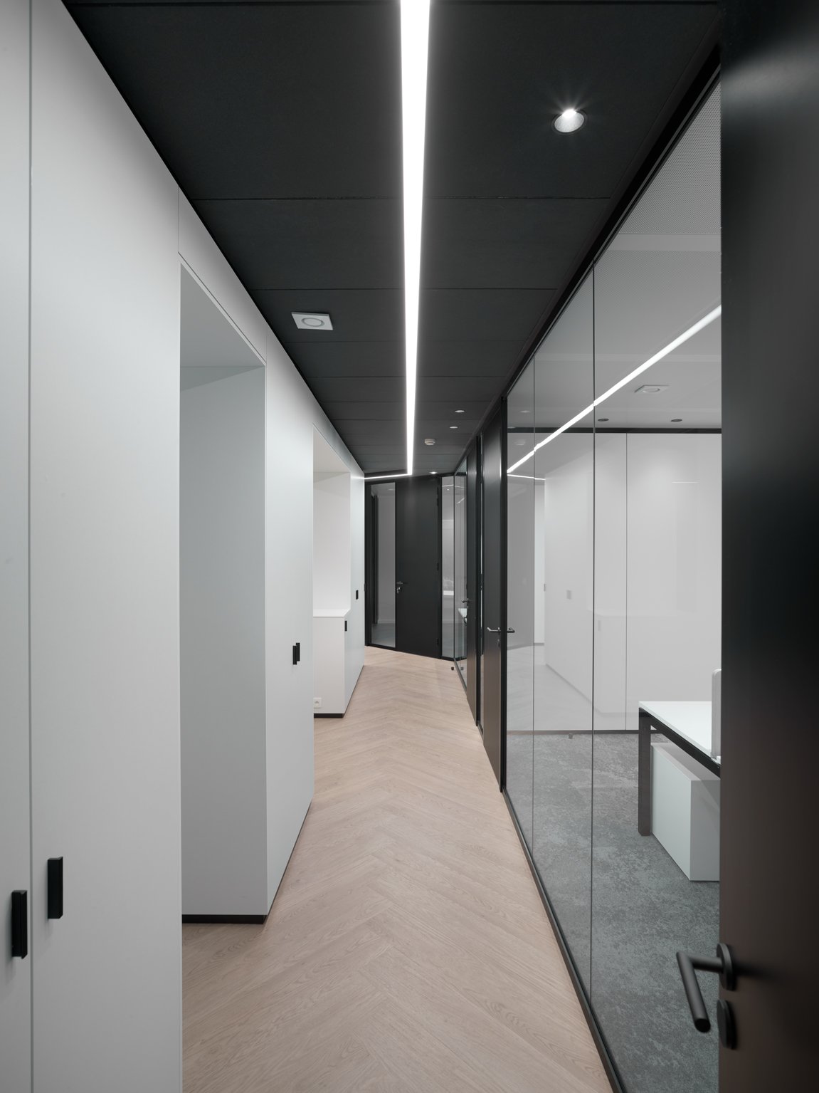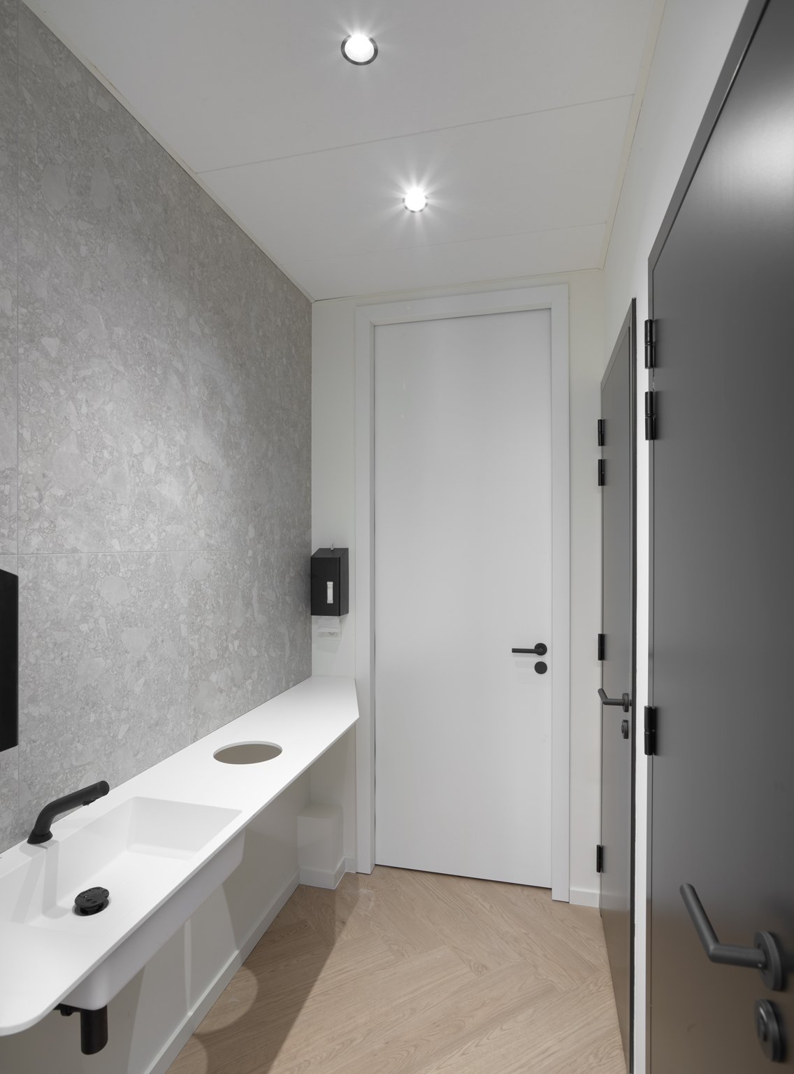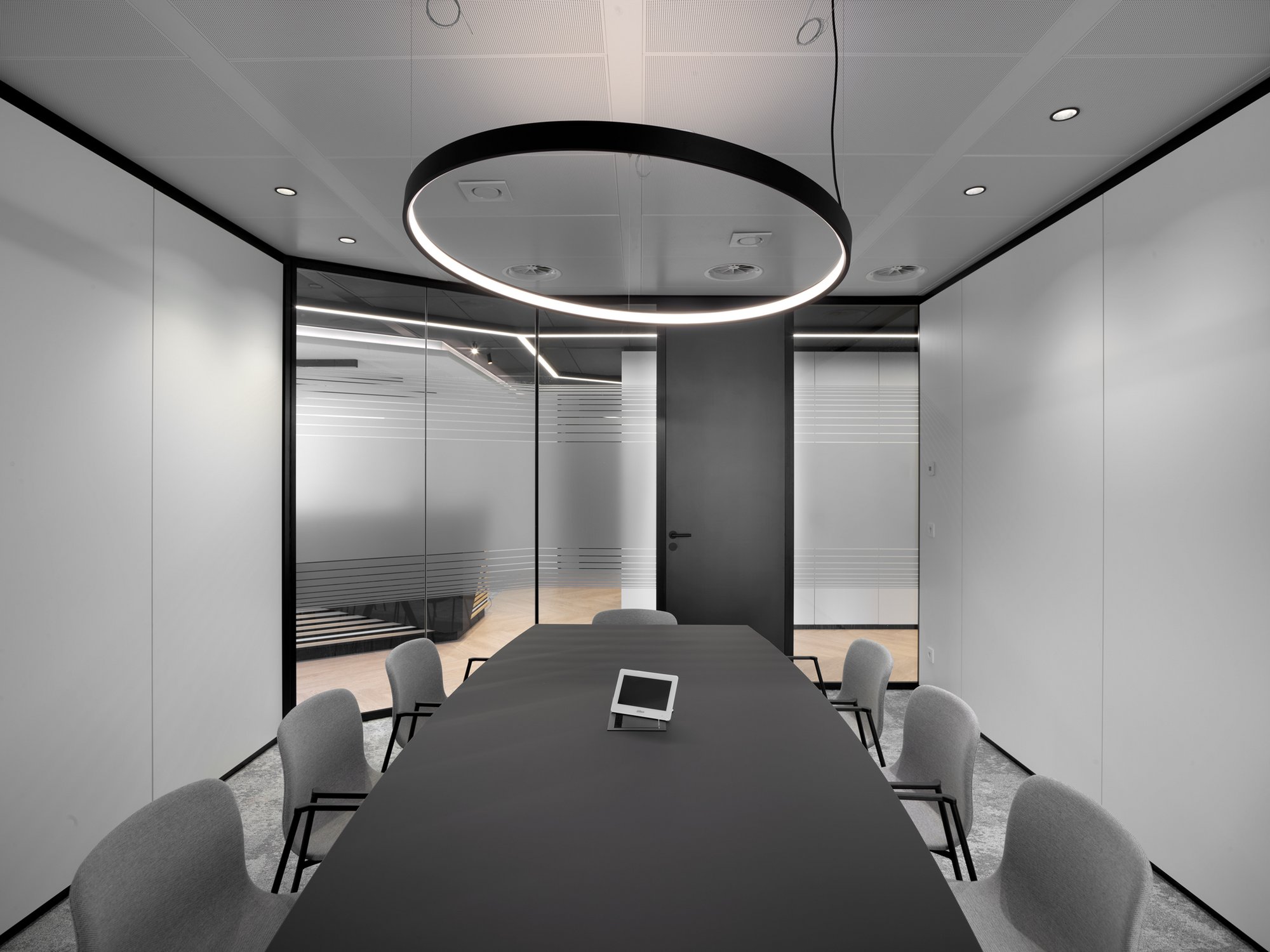 Outre la fourniture et l'installation de nos propres produits, tels que les cloisons pleines JB 2000, les cloisons vitées JB 4000 et les ensembles de portes JB DOOR, Beddeleem s'est également chargé de l'installation de tous les plafonds métalliques, des finitions de sol, de la peinture, du mobilier (sur mesure), de la réalisation de la cuisine et de l'électricité, l'éclairage, la climatisation et la plomberie.