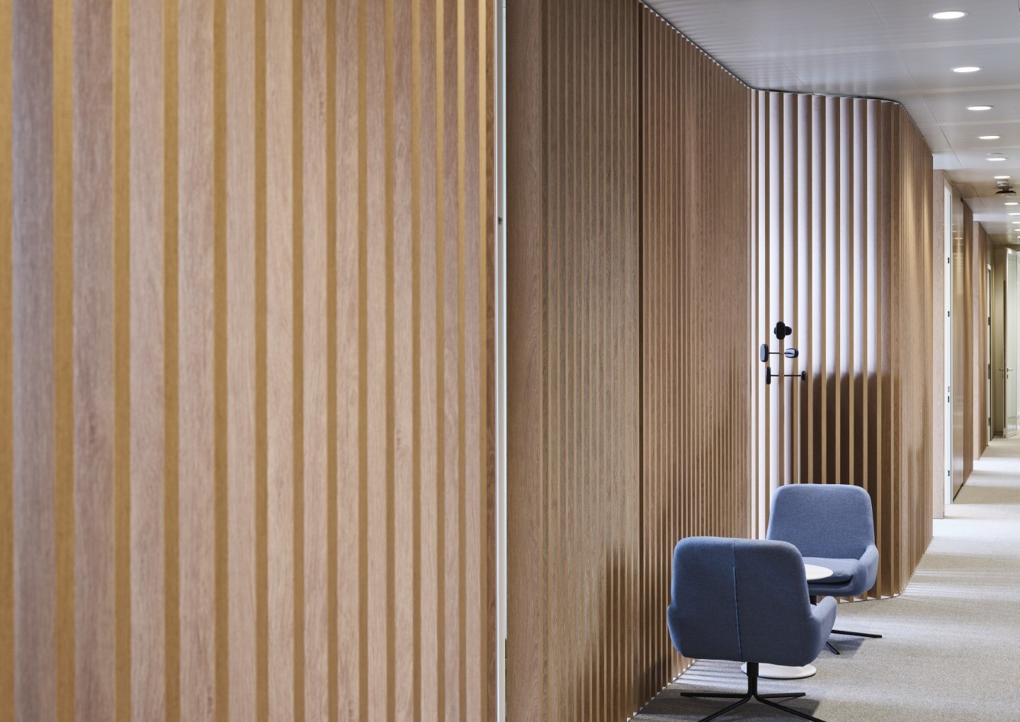Bij de inrichting van de kantoren in één van de gebouwen van de Raad van de Europese Unie werden JB PURE 100 systeemwanden gecombineerd met JB WOOD CLAUSTRA's in fineerhout.