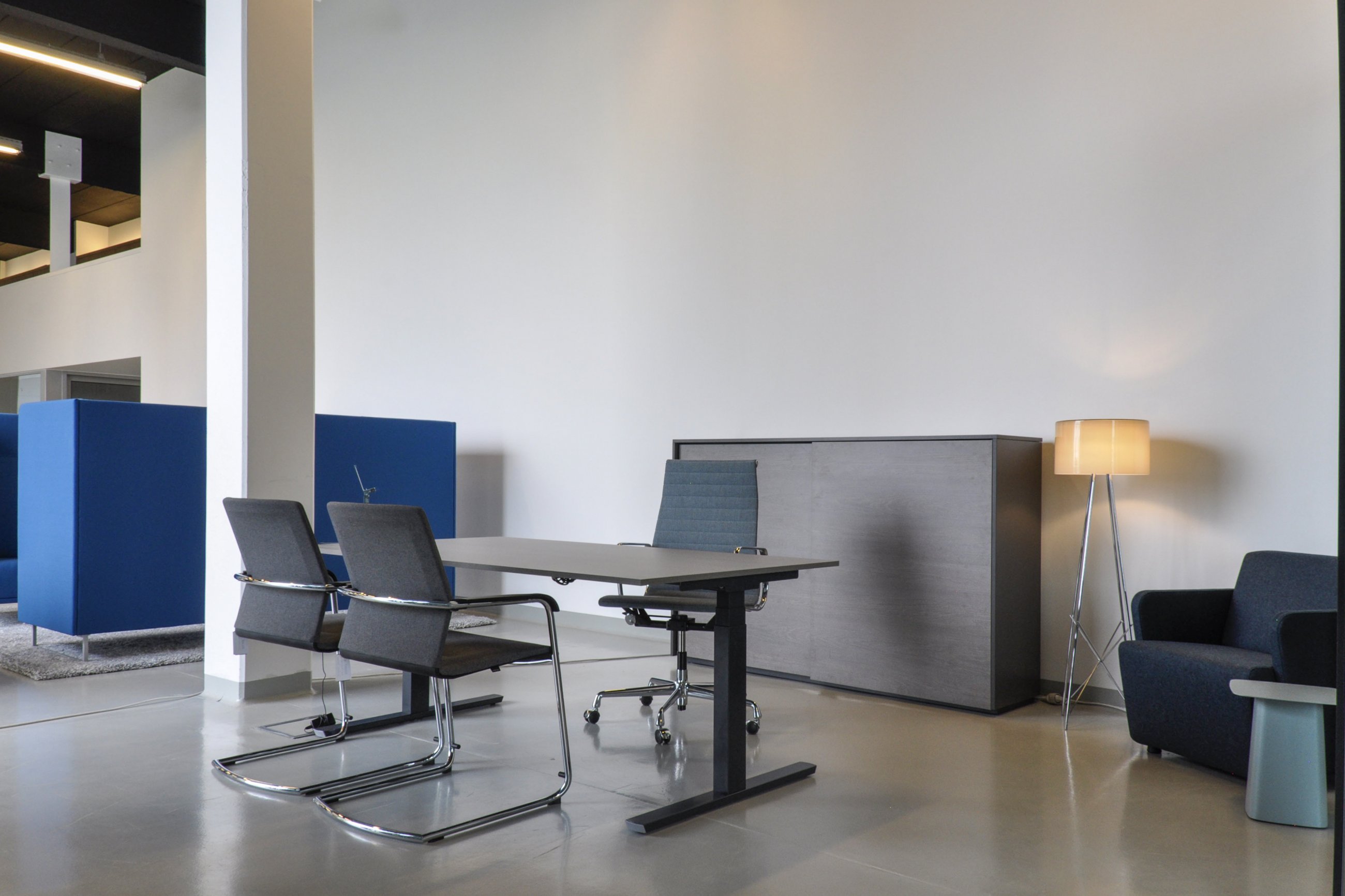 Beddeleem kan dit concept versterken met onder andere een ZIT/STA tafelprogramma onder de noemer ‘JB DESK 04’. Deze tafels voldoen aan de norm EN 527-1, wat in hoofdzaak wil zeggen dat de gebruiker de hoogte van het werkblad kan instellen tussen 650 mm en 1250 mm. Dit maakt zittend en staand werken mogelijk met hetzelfde meubel. Deze hoogteverstelling gebeurt via een druk op de knop (elektrische verstelling). Het JB DESK 04 programma bestaat zowel in enkele als in dubbele uitvoering en kan worden aangevuld met specifieke kabelmanagementopties afgestemd op het ZIT/STA verhaal.