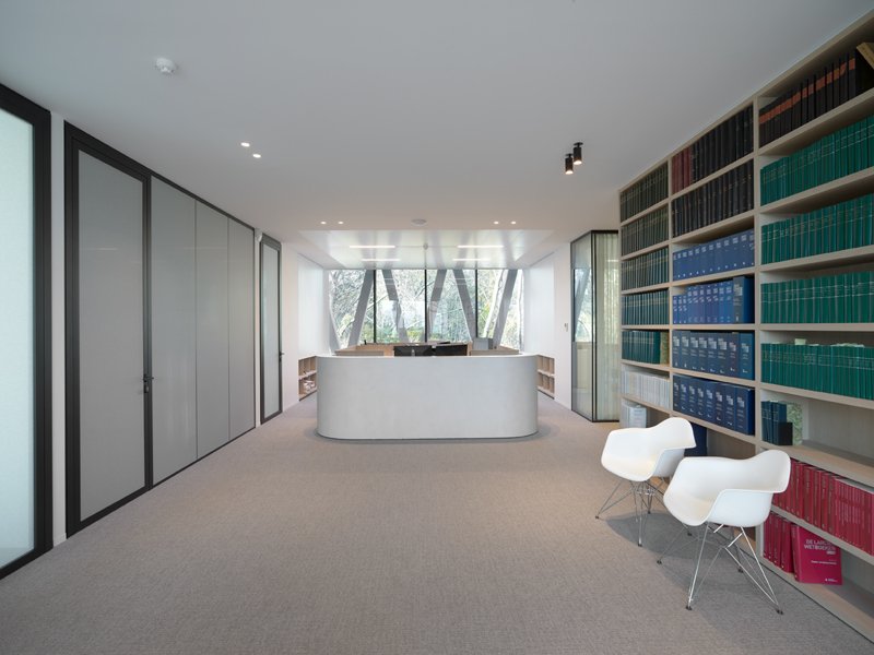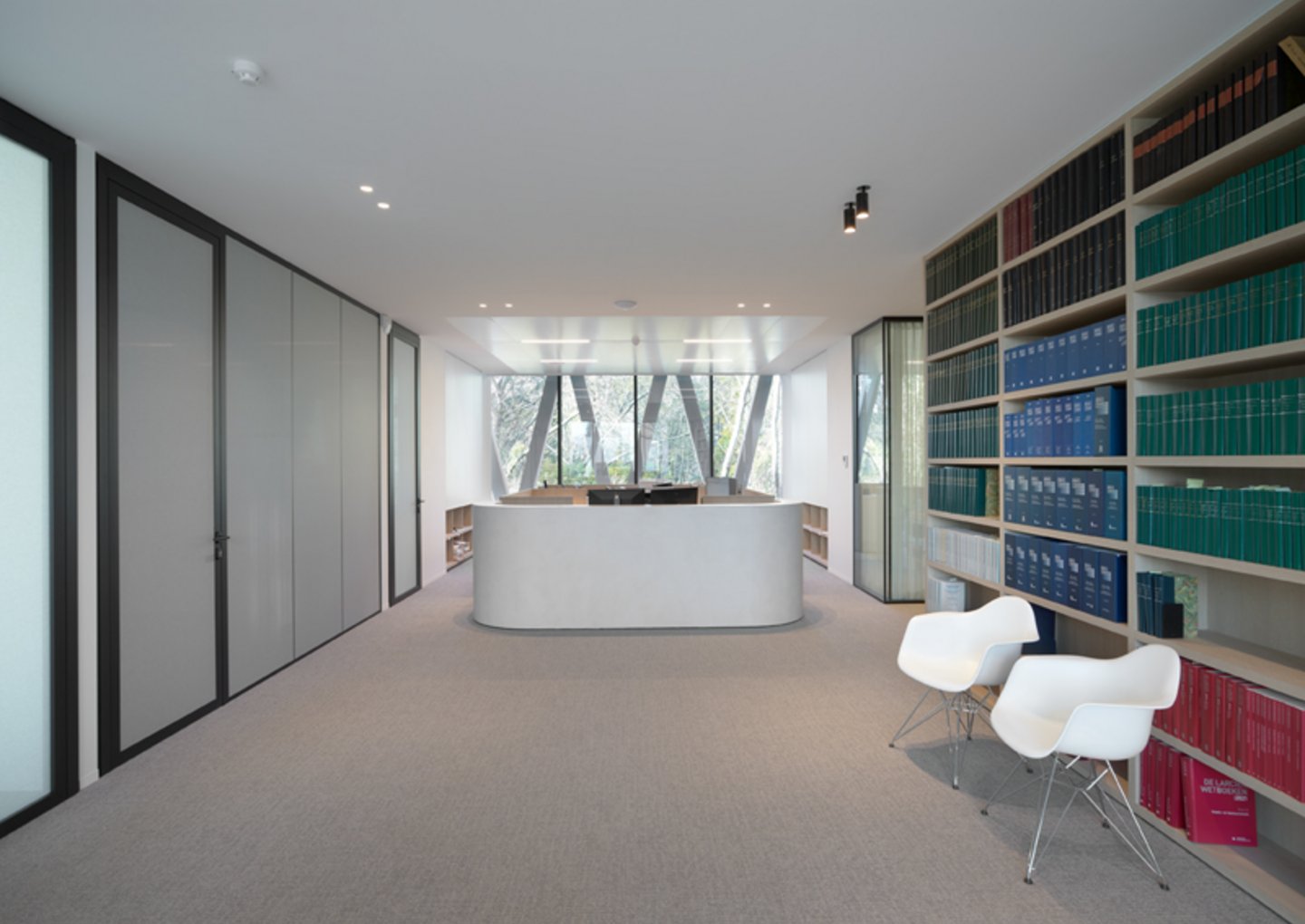 “Het maatmeubilair van onze kantoren en de inrichting van de bibliotheek is verzorgd door Inrichtingen De Bruyne. De samenwerking met Beddeleem verliep vlekkeloos. Alle materialen pasten goed bij elkaar. Flexibel meedenken over materialen en technieken, dat is een sterk punt dat mij opviel. Ook met de andere bouwpartners was er een goede samenwerking. Hier heb ik extra appreciatie voor.”