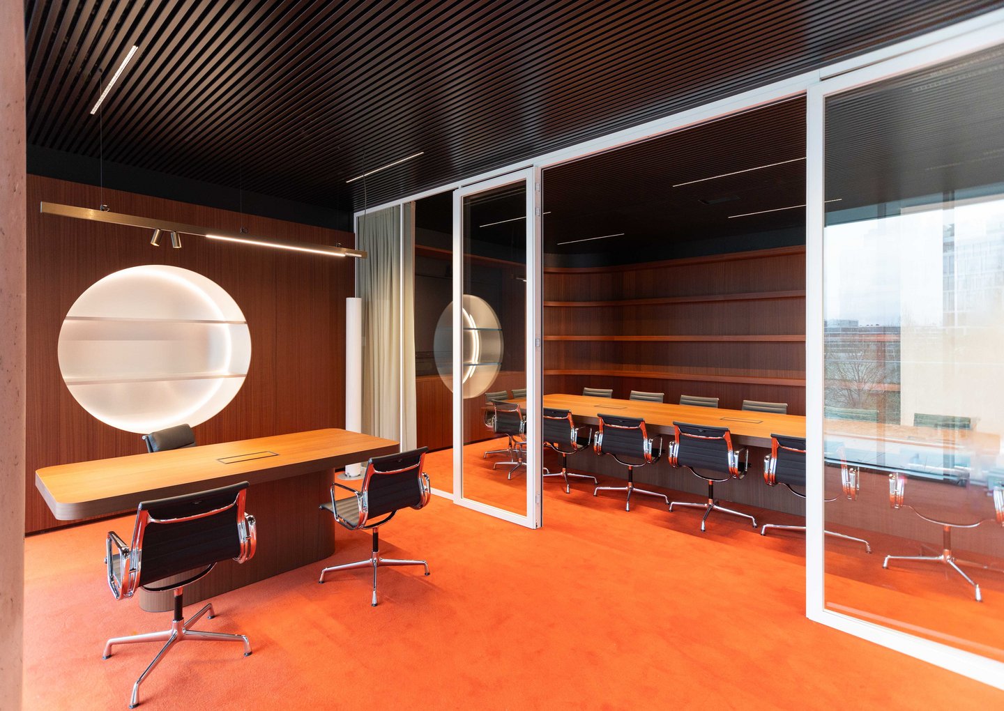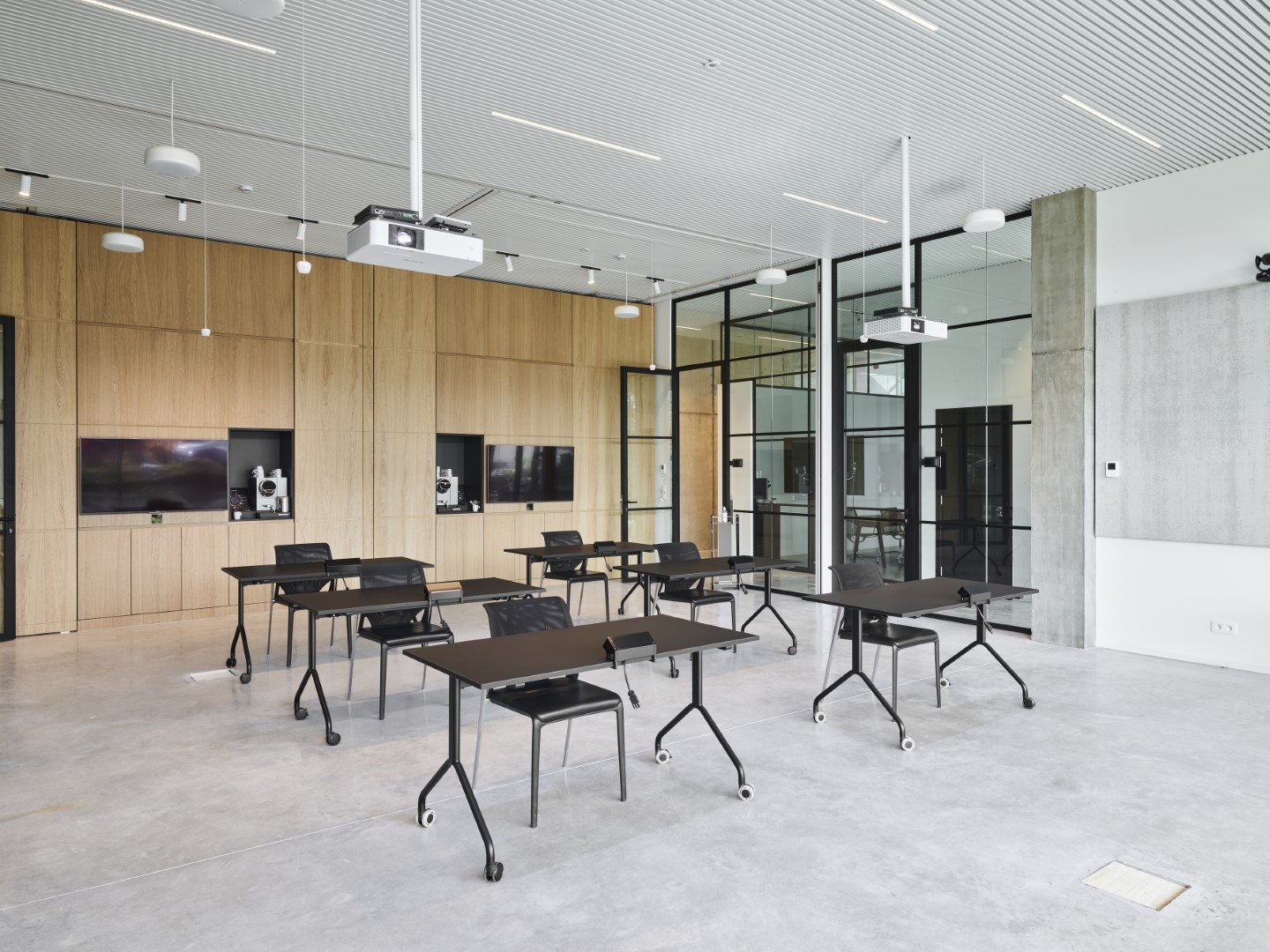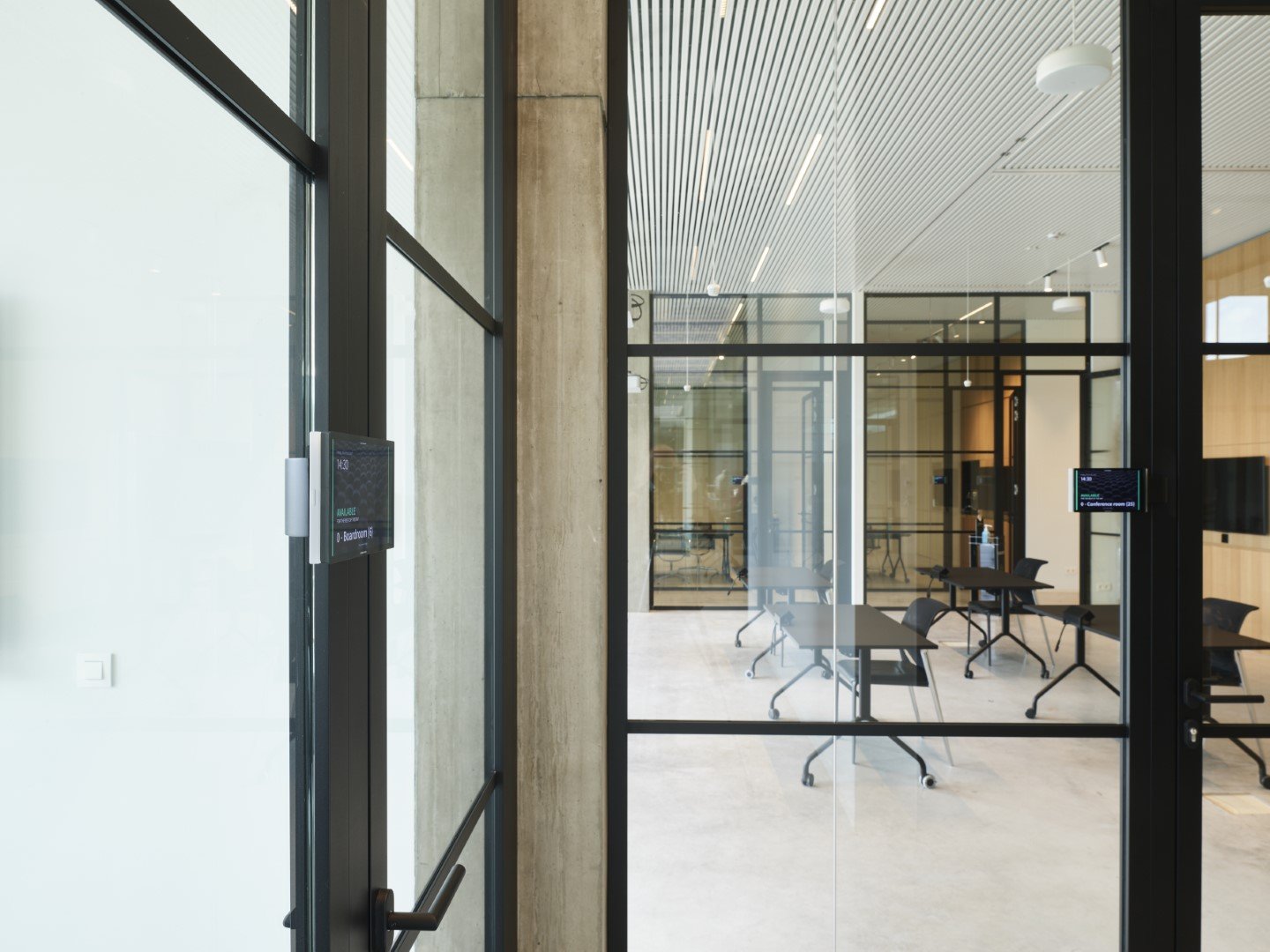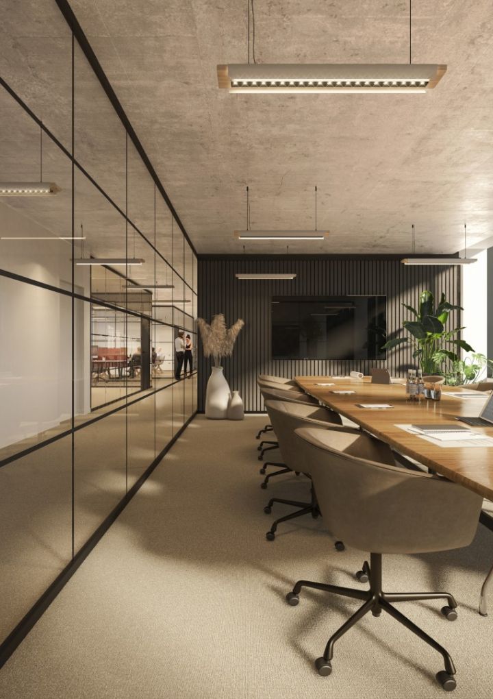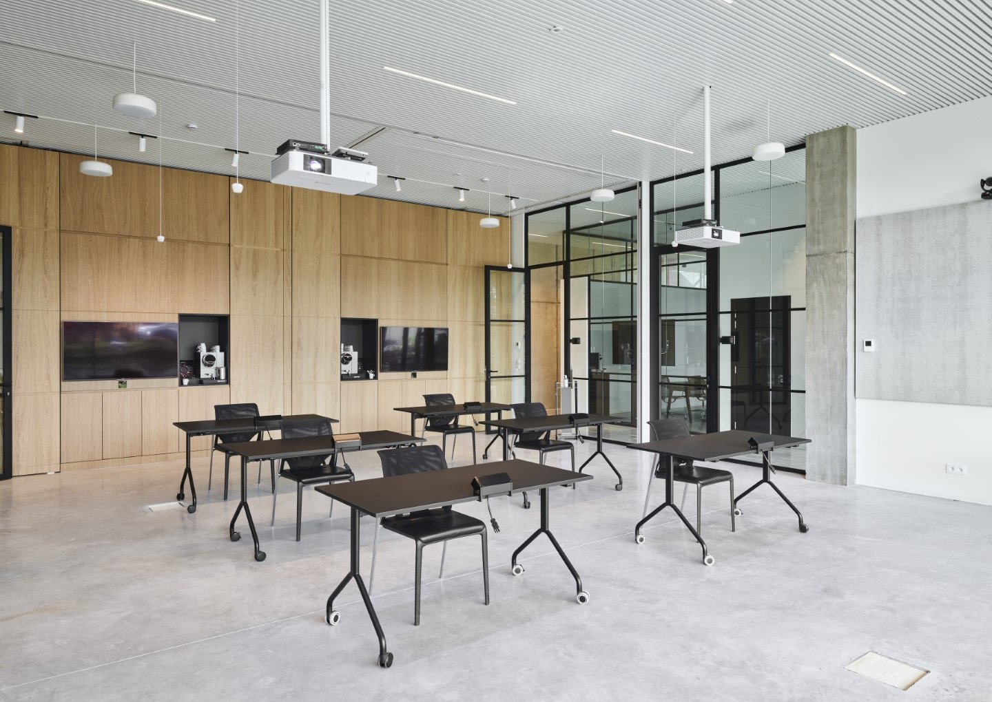 De glaspanelen worden onderverdeeld met extra profielen voor een strak, elegant en industrieel resultaat.