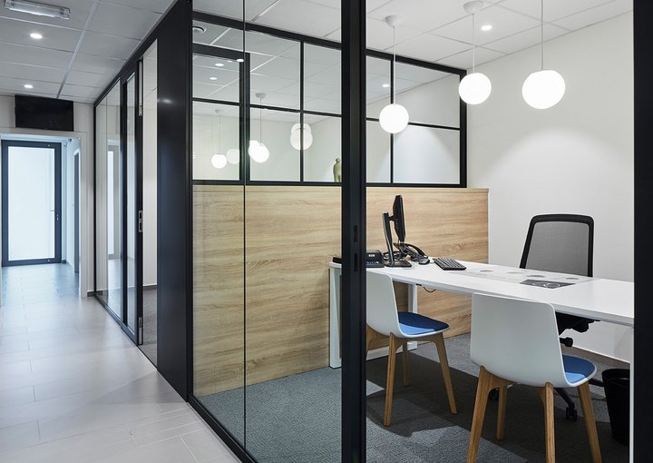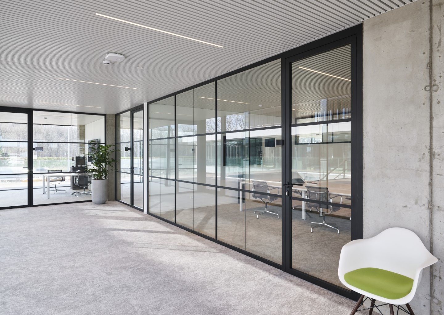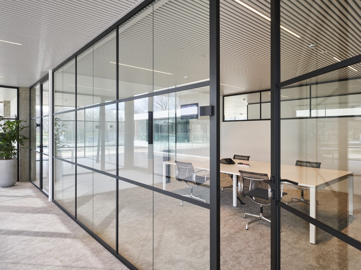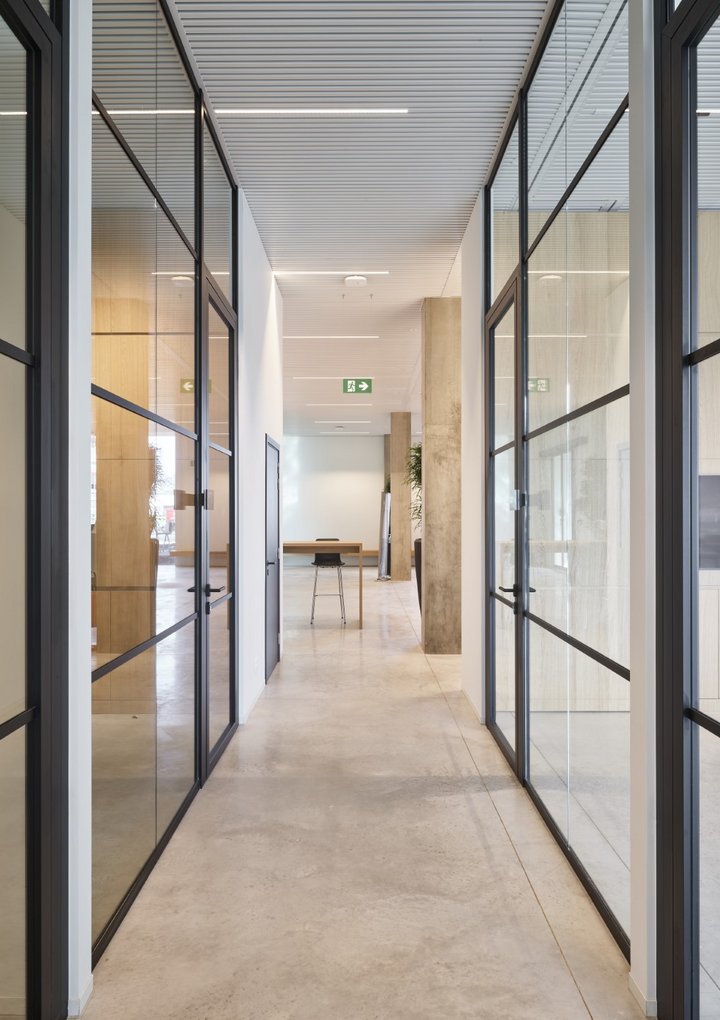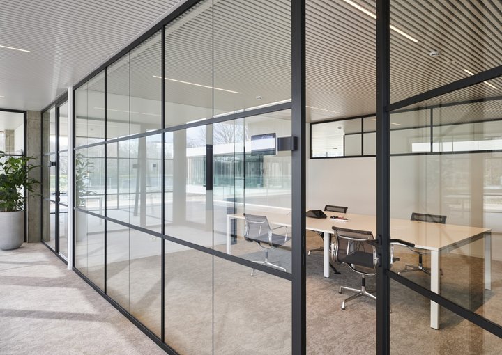 Enkele glaswand met "steel look"