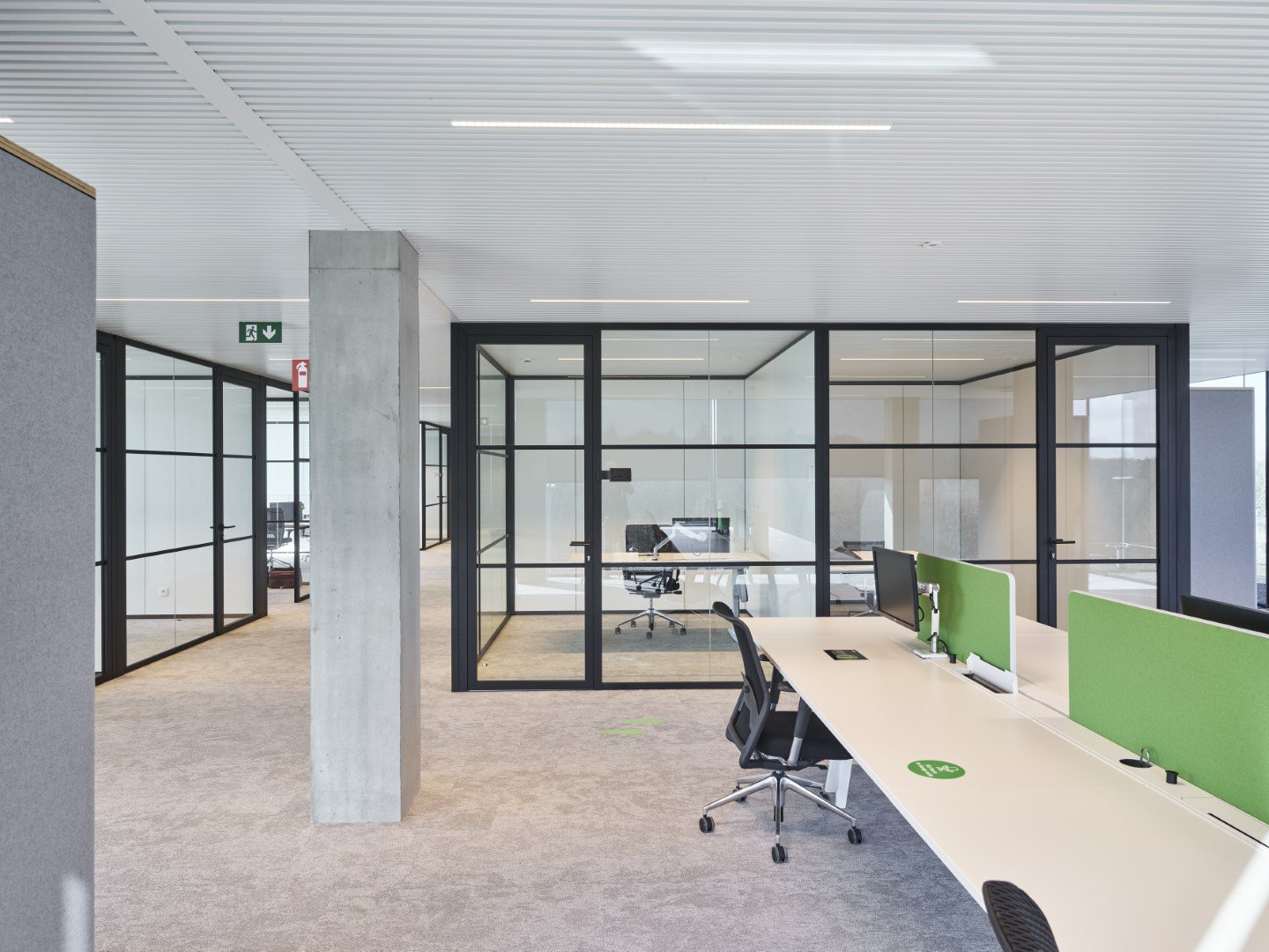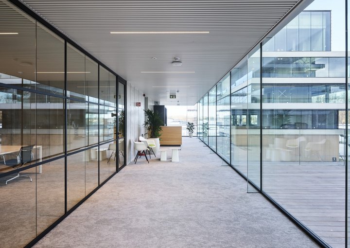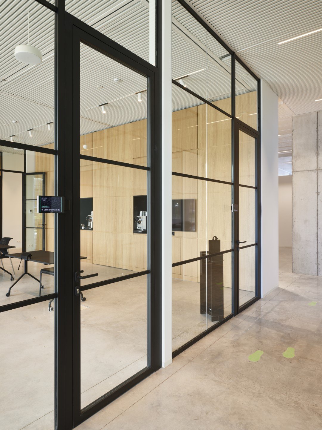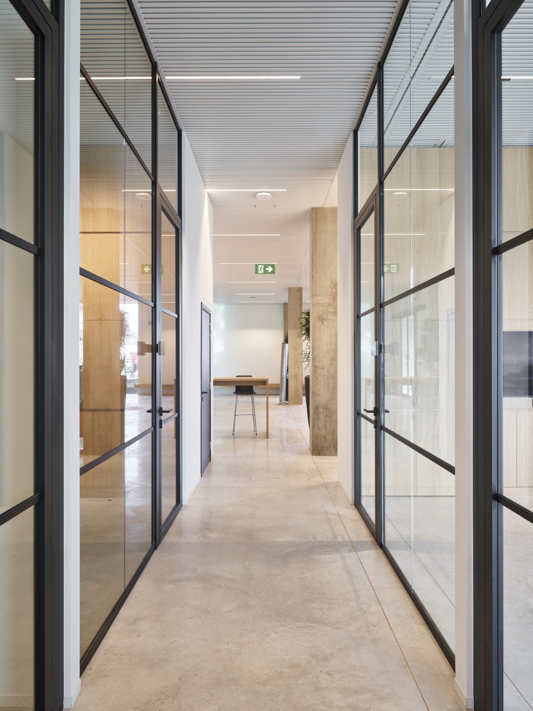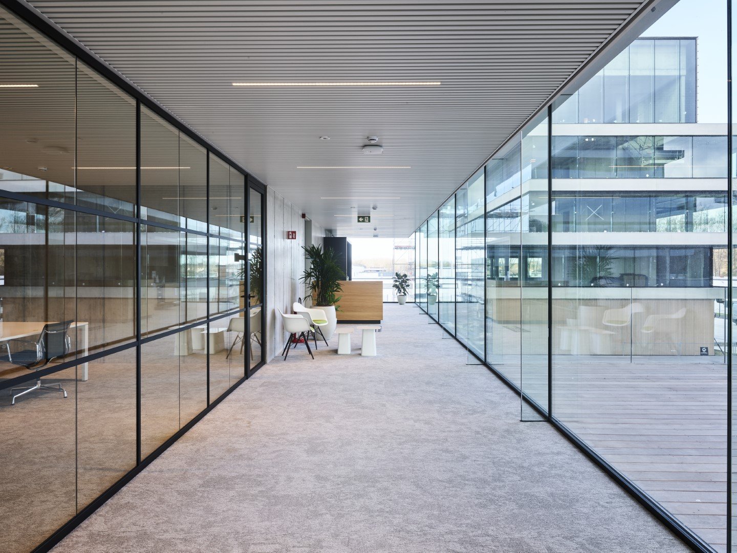 Enkele glaswand met "steel look"