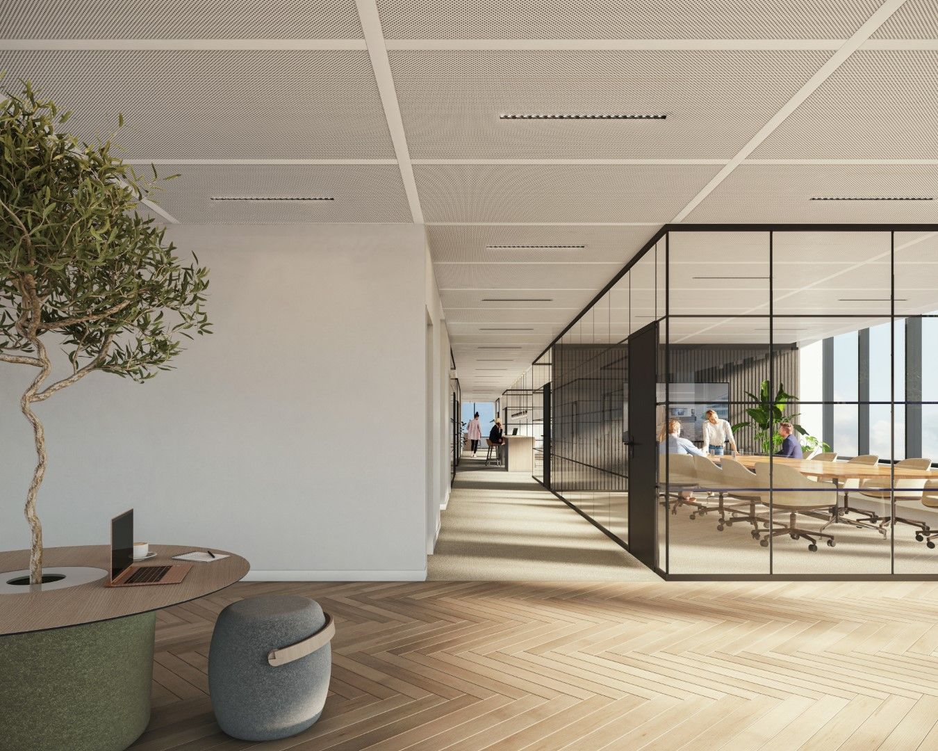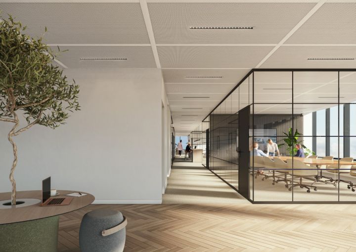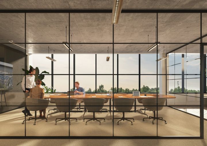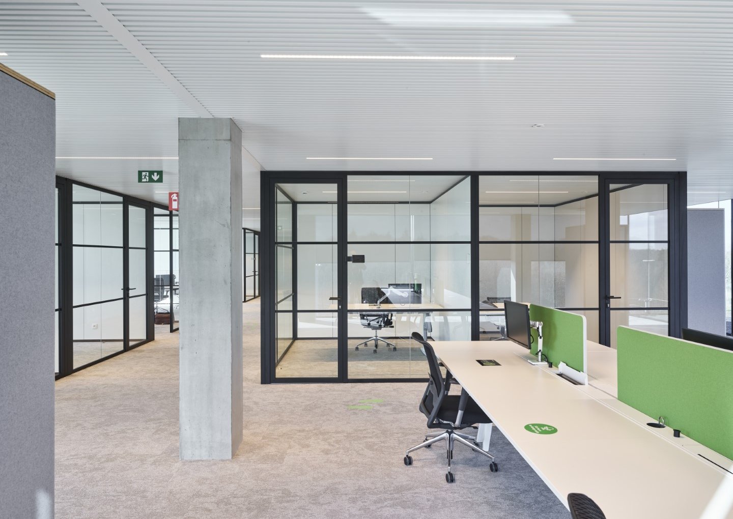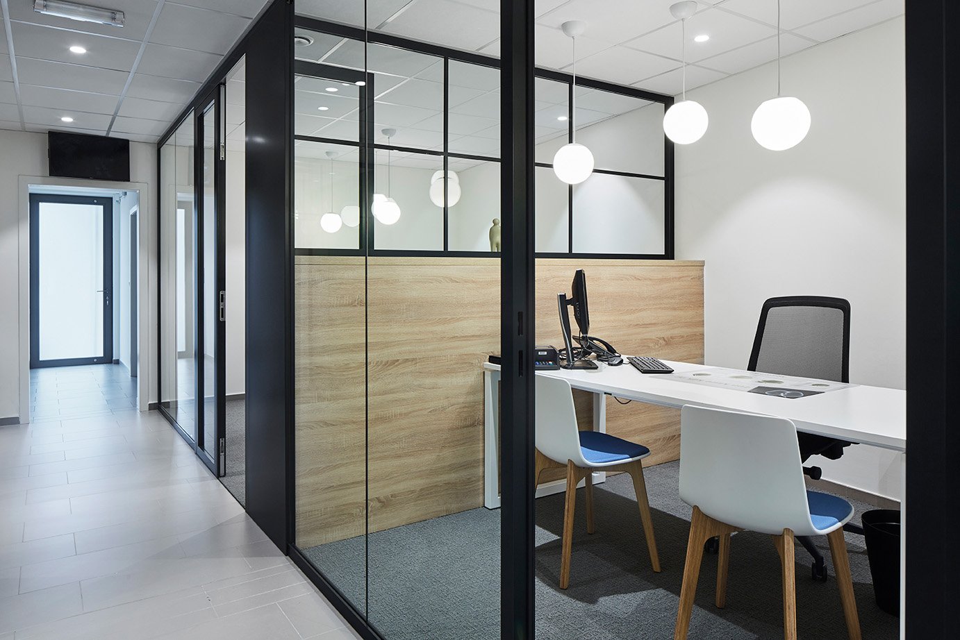 Enkele glaswand met "steel look"