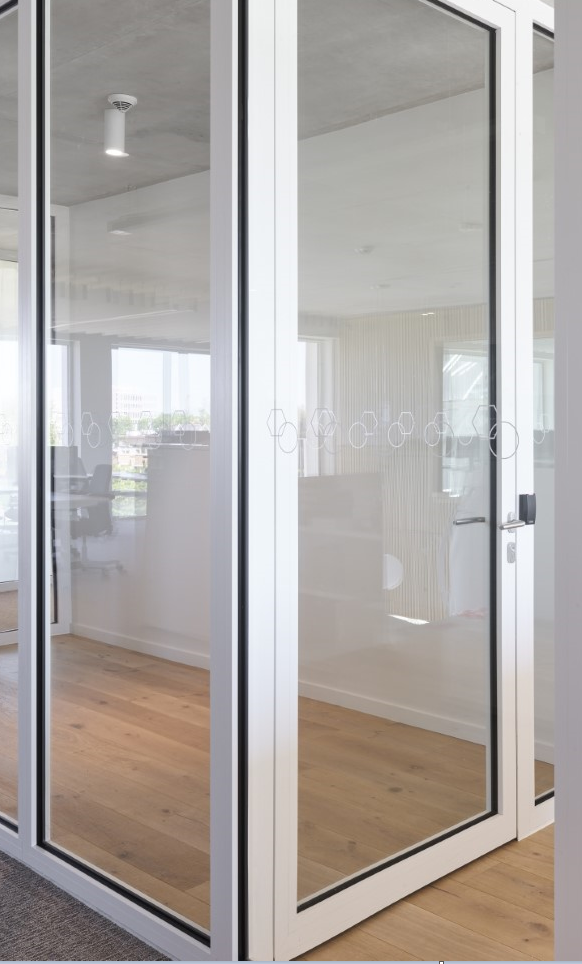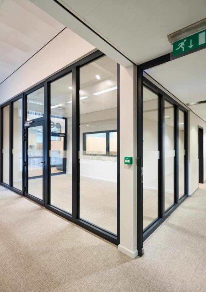 Elegante glazen wand met een brandweerstand tot EI 120 minuten.