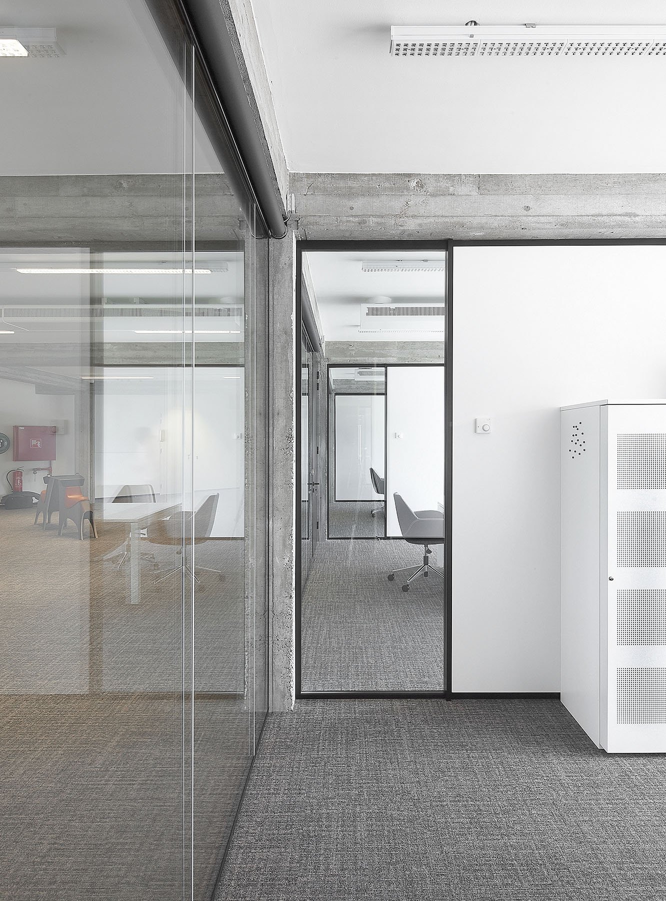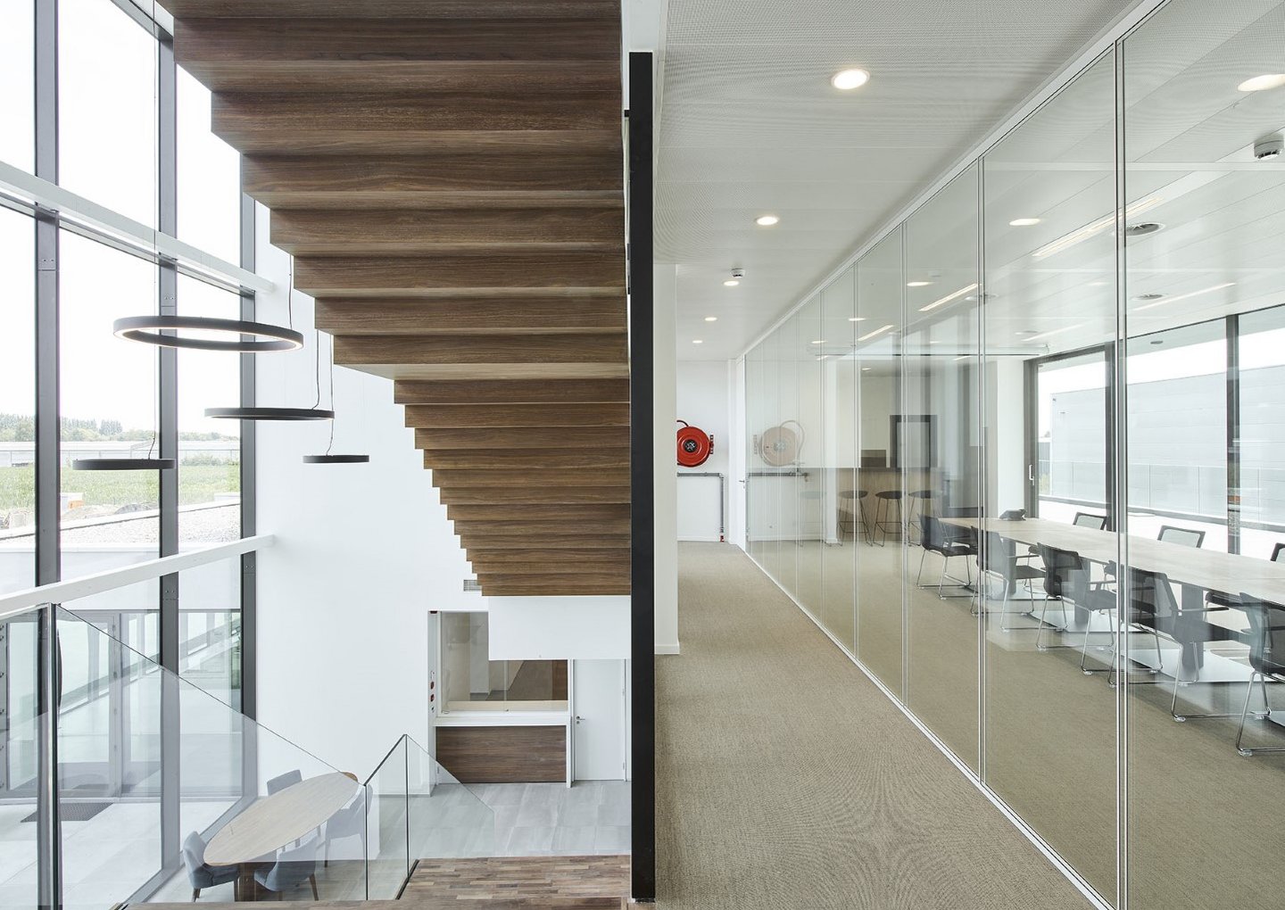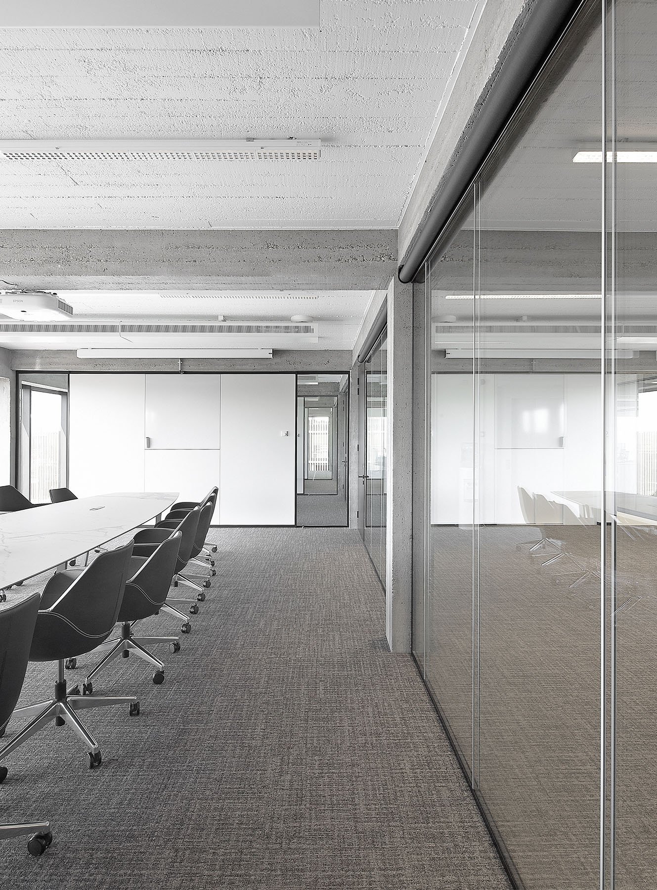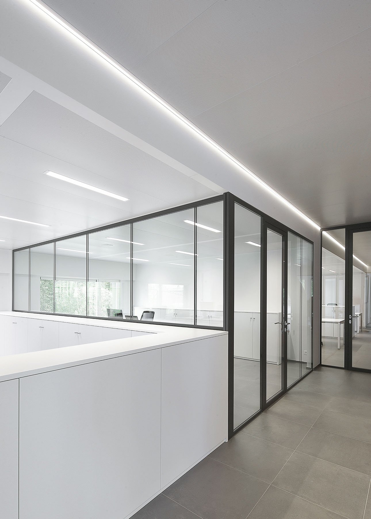 De excentrische opstelling van het glas in de JB PURE 50 ONE zorgt voor een naadloze overgang naar JB PURE 50 TWO. Deze combinatie zorgt voor strakke gangwanden en biedt ook voordelen op het vlak van technische vereisten (bv. akoestiek) en budget.
