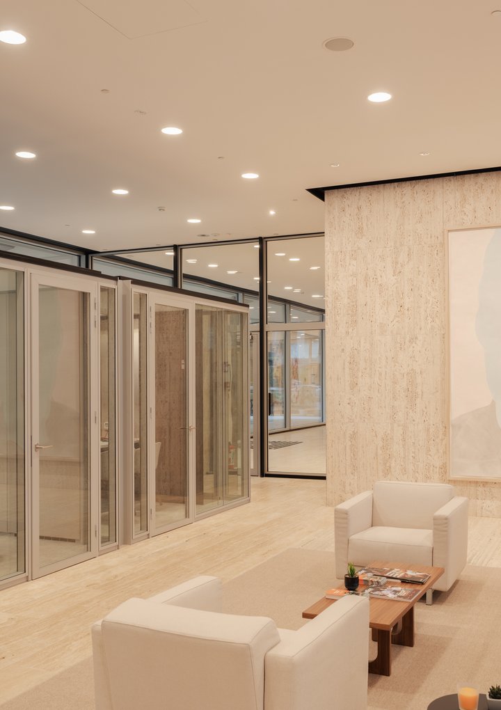 Het JB QBE-systeem is modulair en ook flexibel naar afwerking. Zo is het systeem compatibel met al onze systeemwanden en plafondsystemen, waardoor ons ruimte-in-ruimte-concept perfect kan worden afgestemd op uw totaalproject.