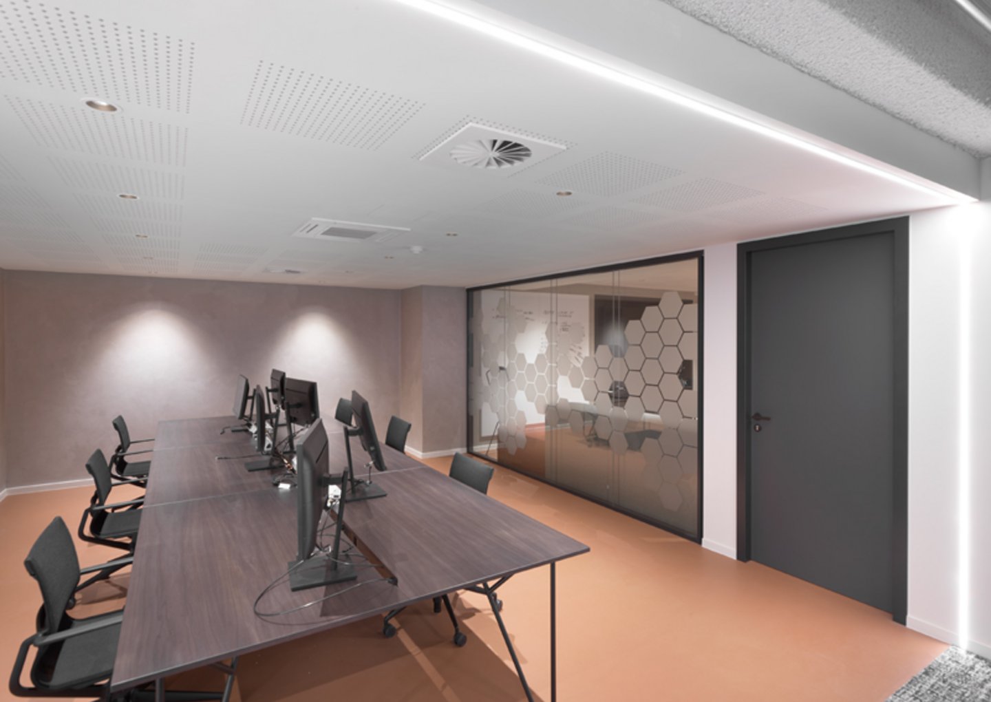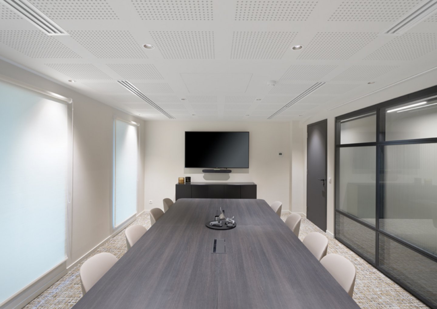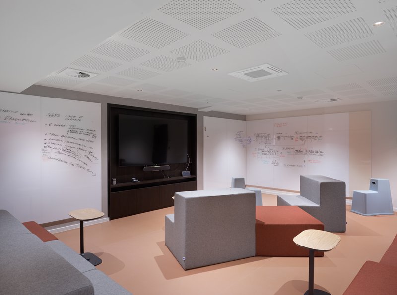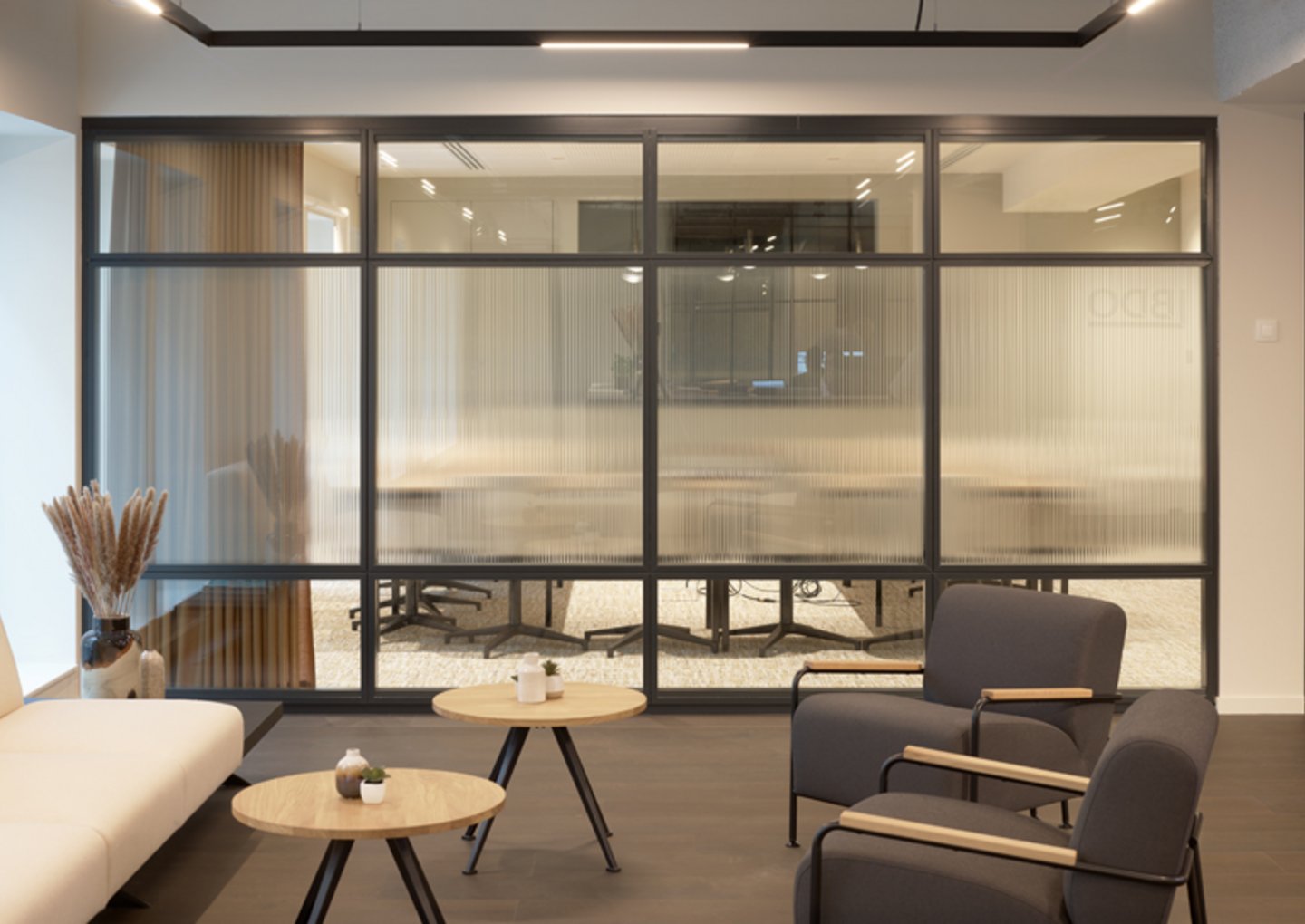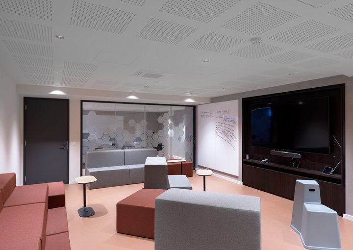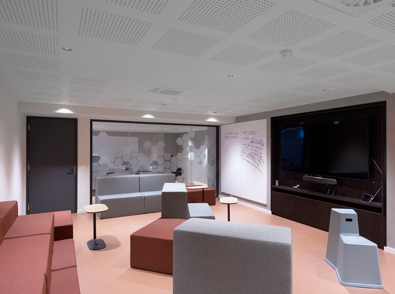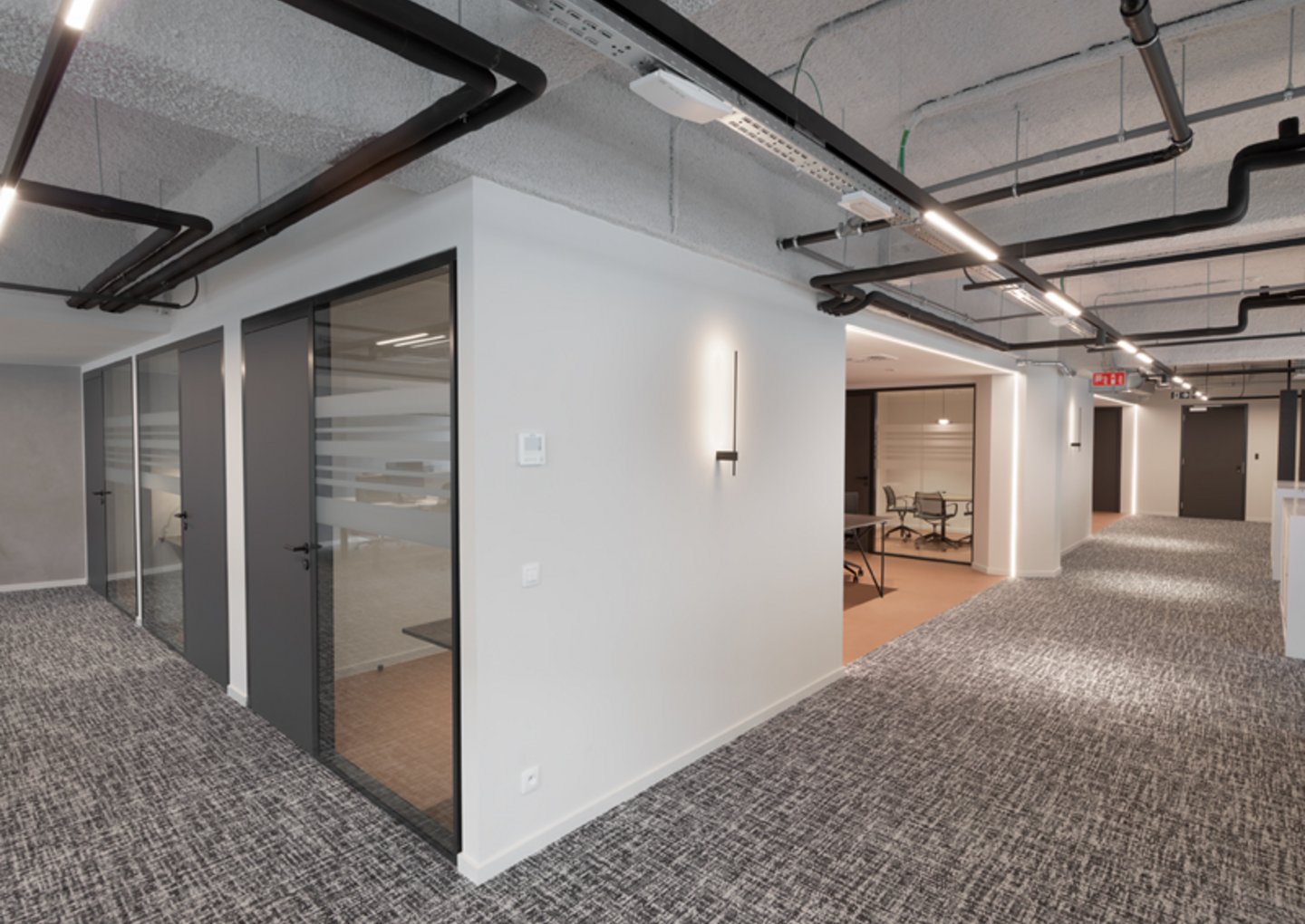 Naast de levering en plaatsing van onze eigen JB 2000 FRAME en JB PURE 100 beglaasde systeemwanden namen wij ook de plaatsing van de gipskartonwanden en -plafonds en de schilderwerken voor onze rekening.