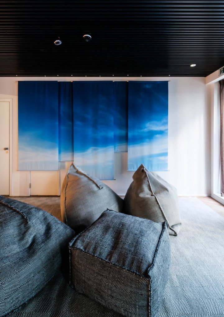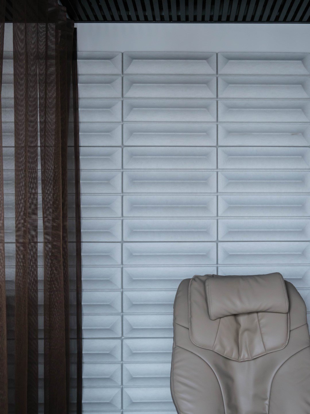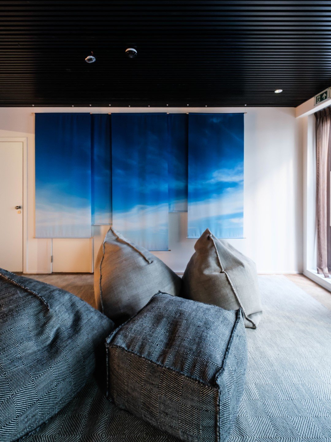 1.200 m² wanden met afwerking in stof, vilt en linoleum