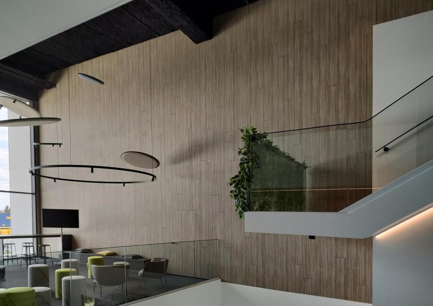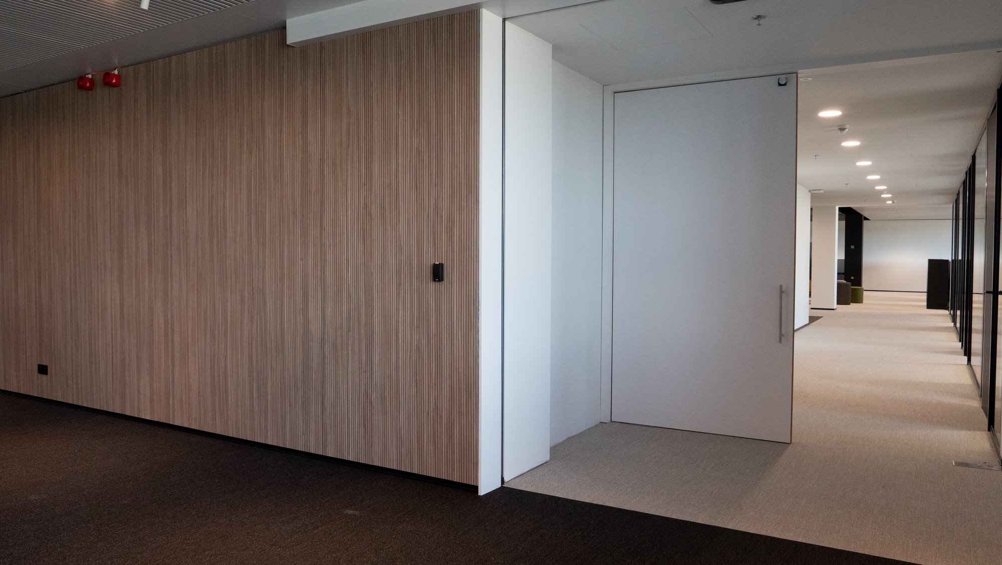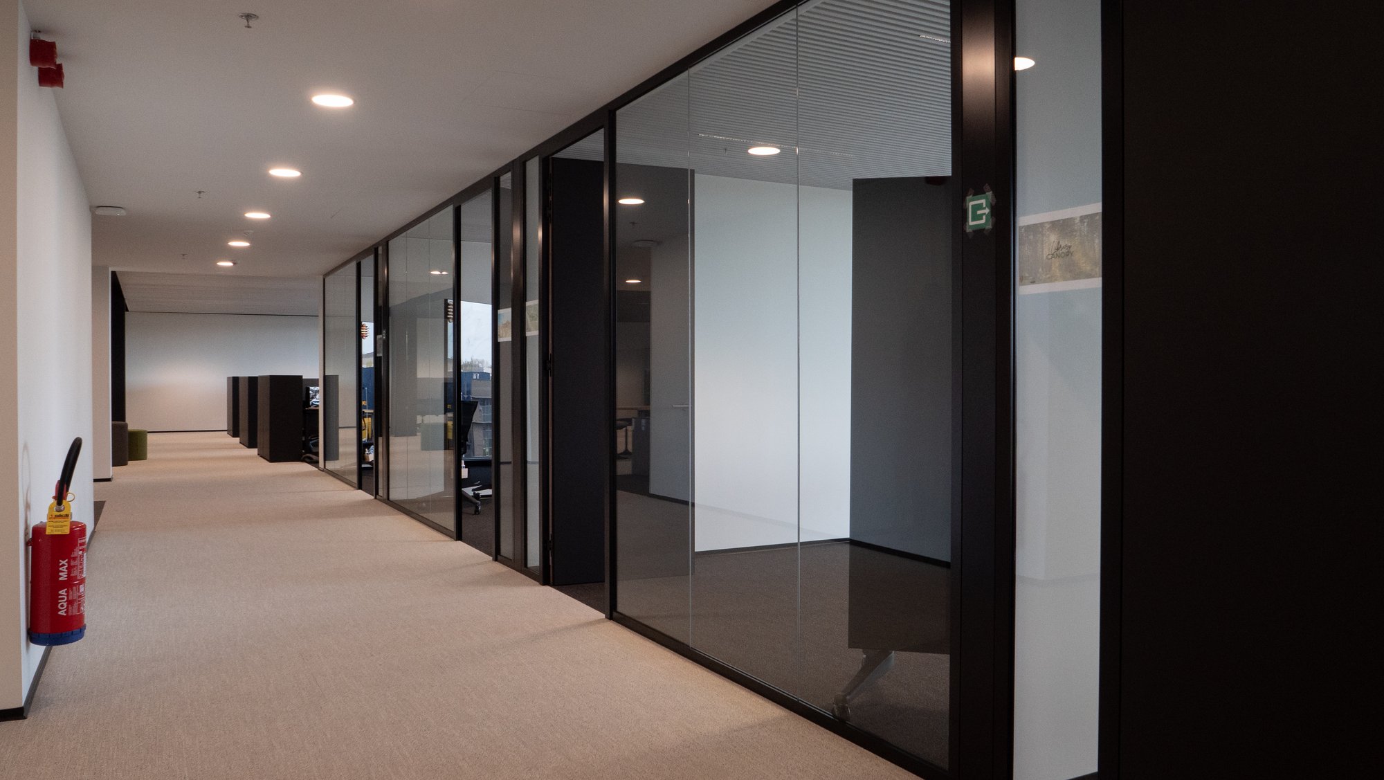 Beddeleem verzorgde de totaalafwerking met de levering en plaatsing van JB 4000 en JB FIREGLASS beglaasde systeemwanden in de kantoren, allerlei types binnendeuren, gipskartonwanden, een mobiele wand en als eyecatcher, een 15 meter hoge akoestische wand.