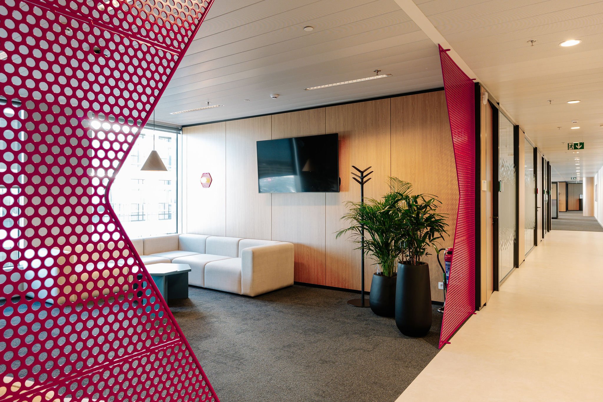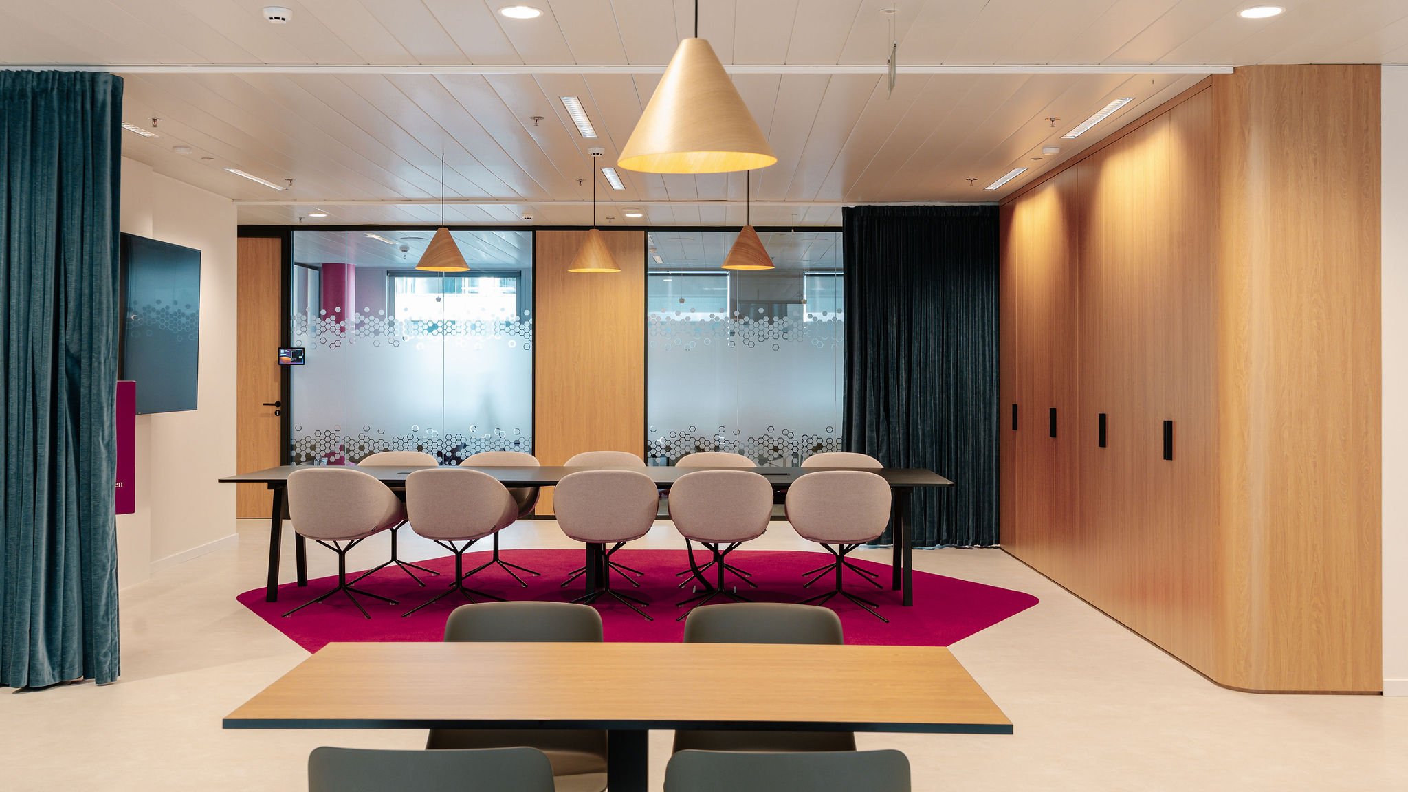 Beddeleem droeg bij aan dit inspirerende werkplekconcept door de productie, levering en plaatsing van de JB 4000 glazen wanden met bijpassende deurmodules, en de JB 2000 modulaire en circulaire wanden, gecombineerd met JB FLUSH-deuren voor een strak en doorlopend geheel.
