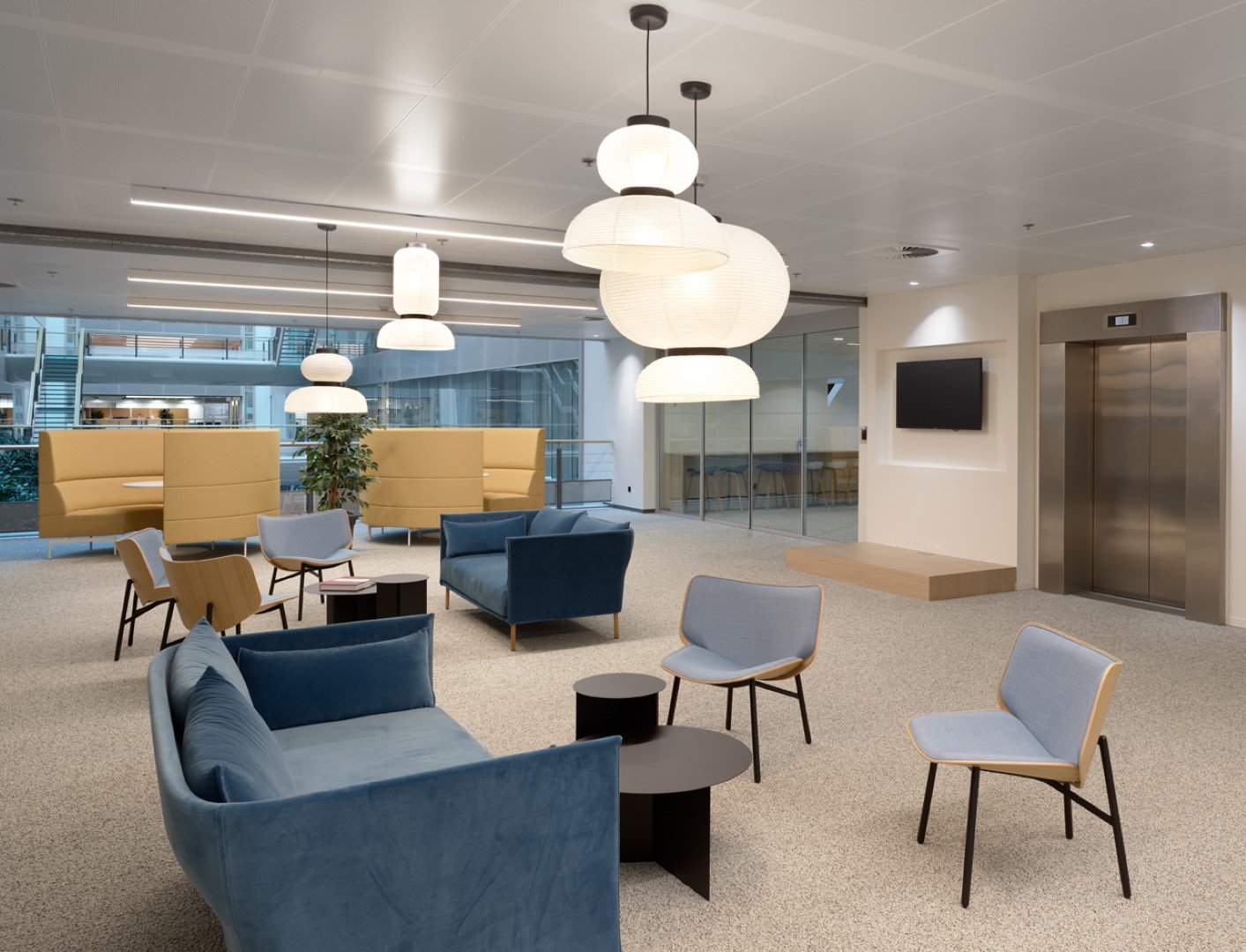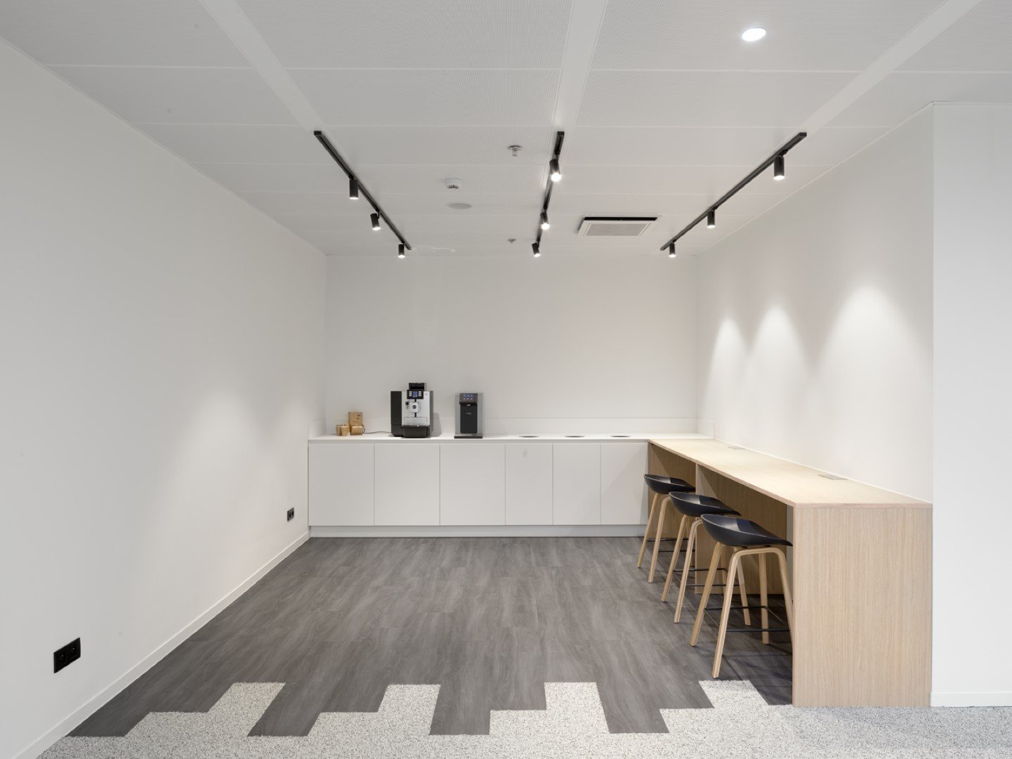Voor de wanden werd gekozen voor JB 2000, JB 4000, JB CLAUSTRA en JB PURE 100. Beddeleem plaatste ook het meubilair uit ons JB OFFICE gamma waaronder JB LOCKERS, JB DESKS, JB STORES en maatmeubilair voor de kitchenettes. Daarnaast is er ook gekozen voor zitmeubilair zoals banquetten, diverse krukken en stoelen.
