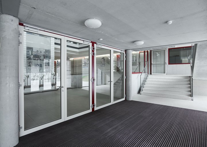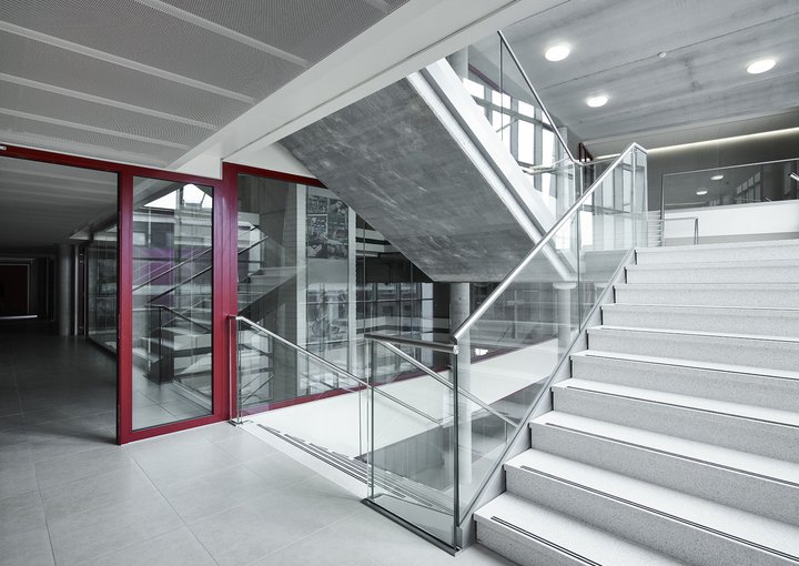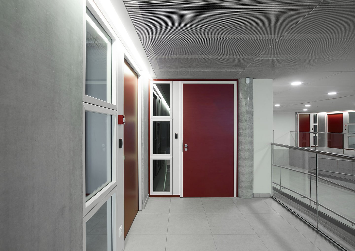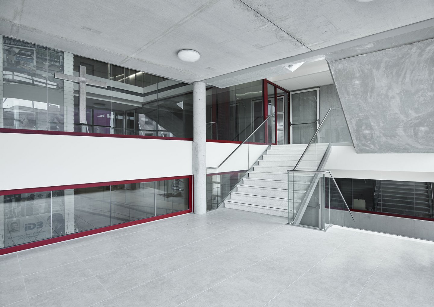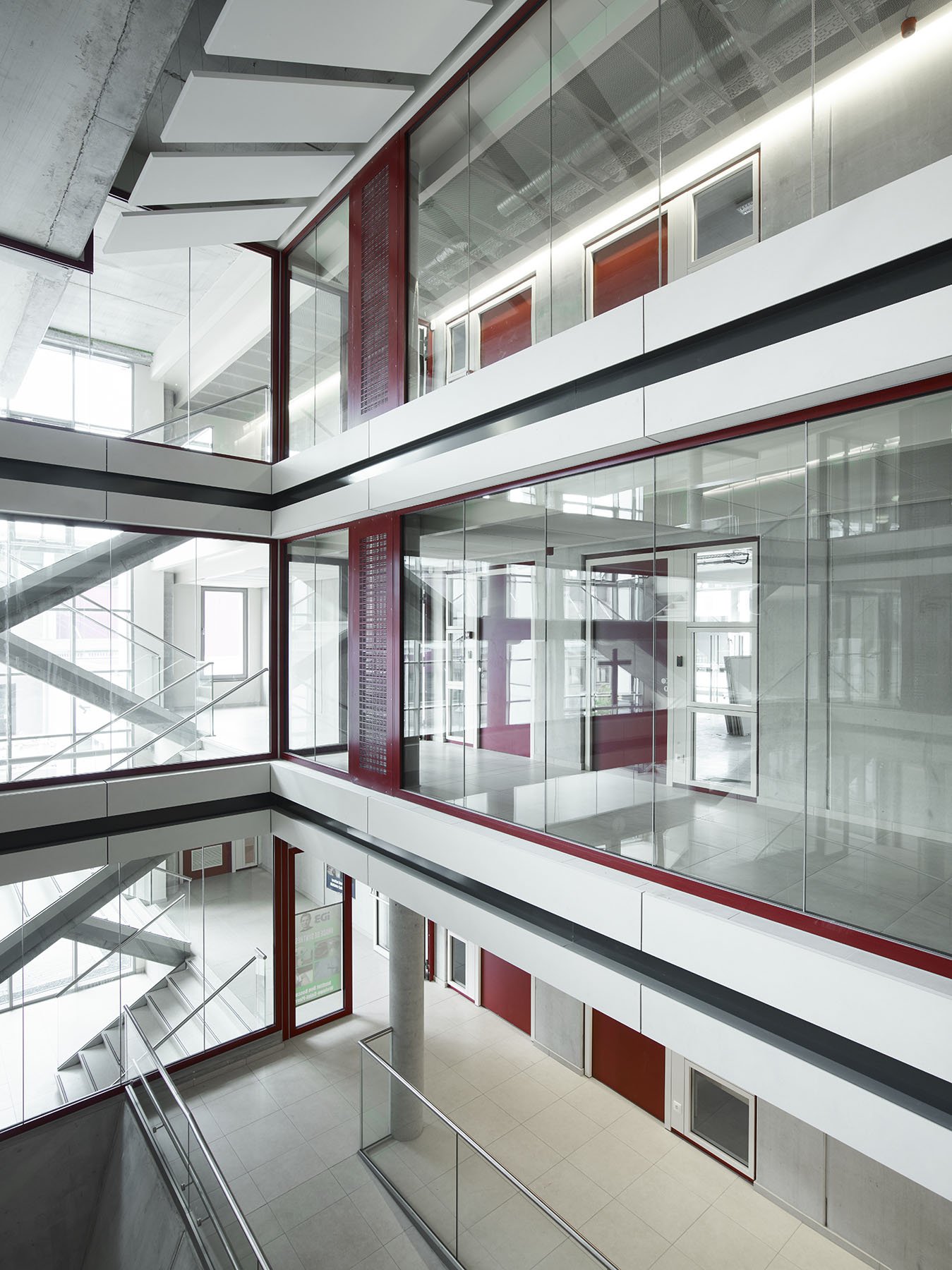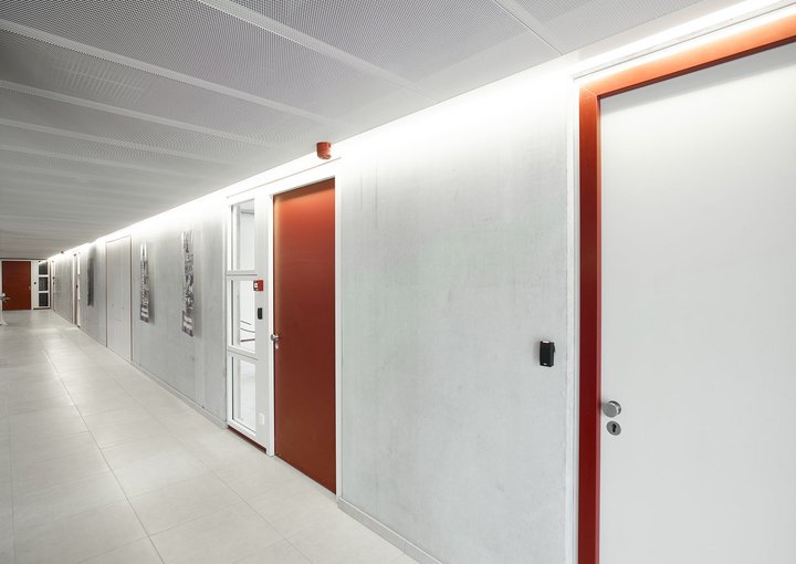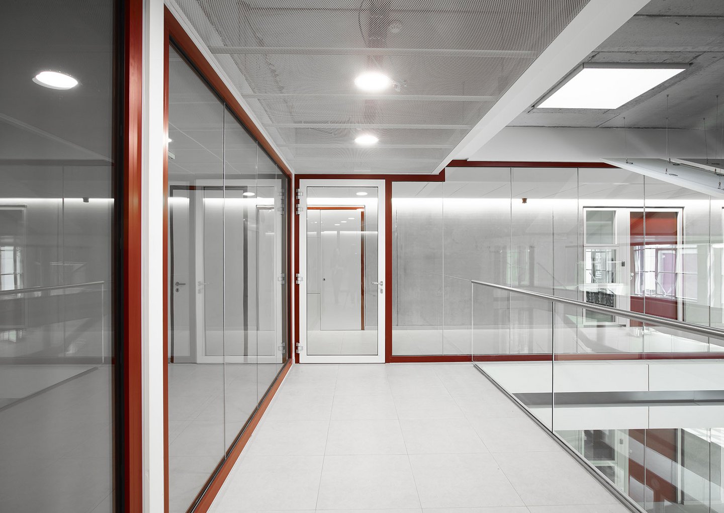 Compartimentering in het schoolgebouw door het gebruik van JB FIREGLASS.