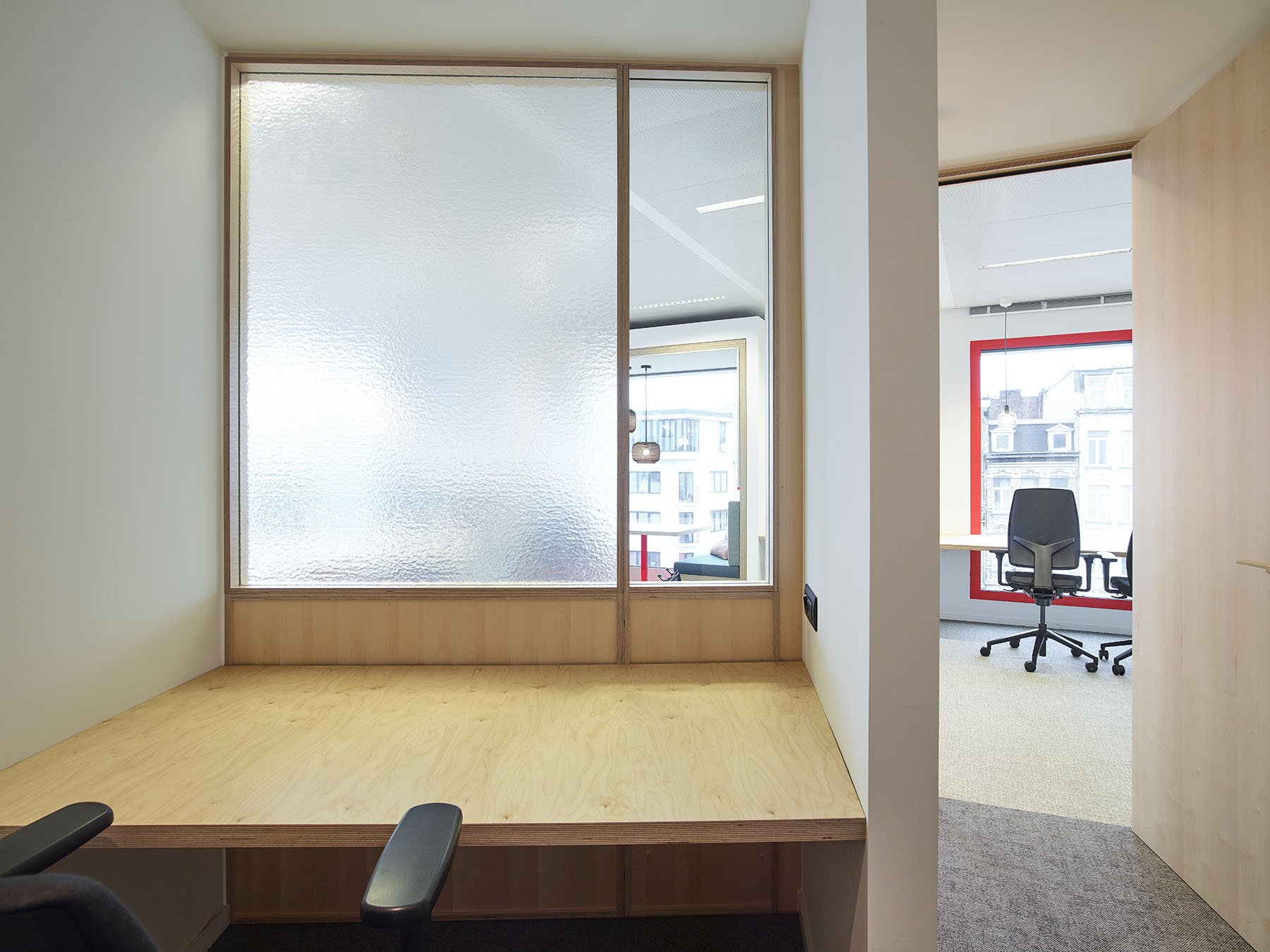 Gipskartonwanden in combinatie met de volle houten systeemwand JB 2000, houten ramen JB WINDOW en houten deuren JB DOOR.
