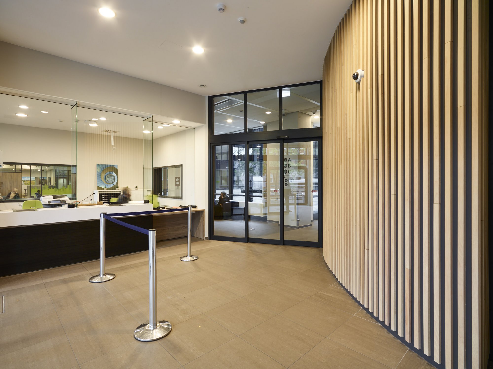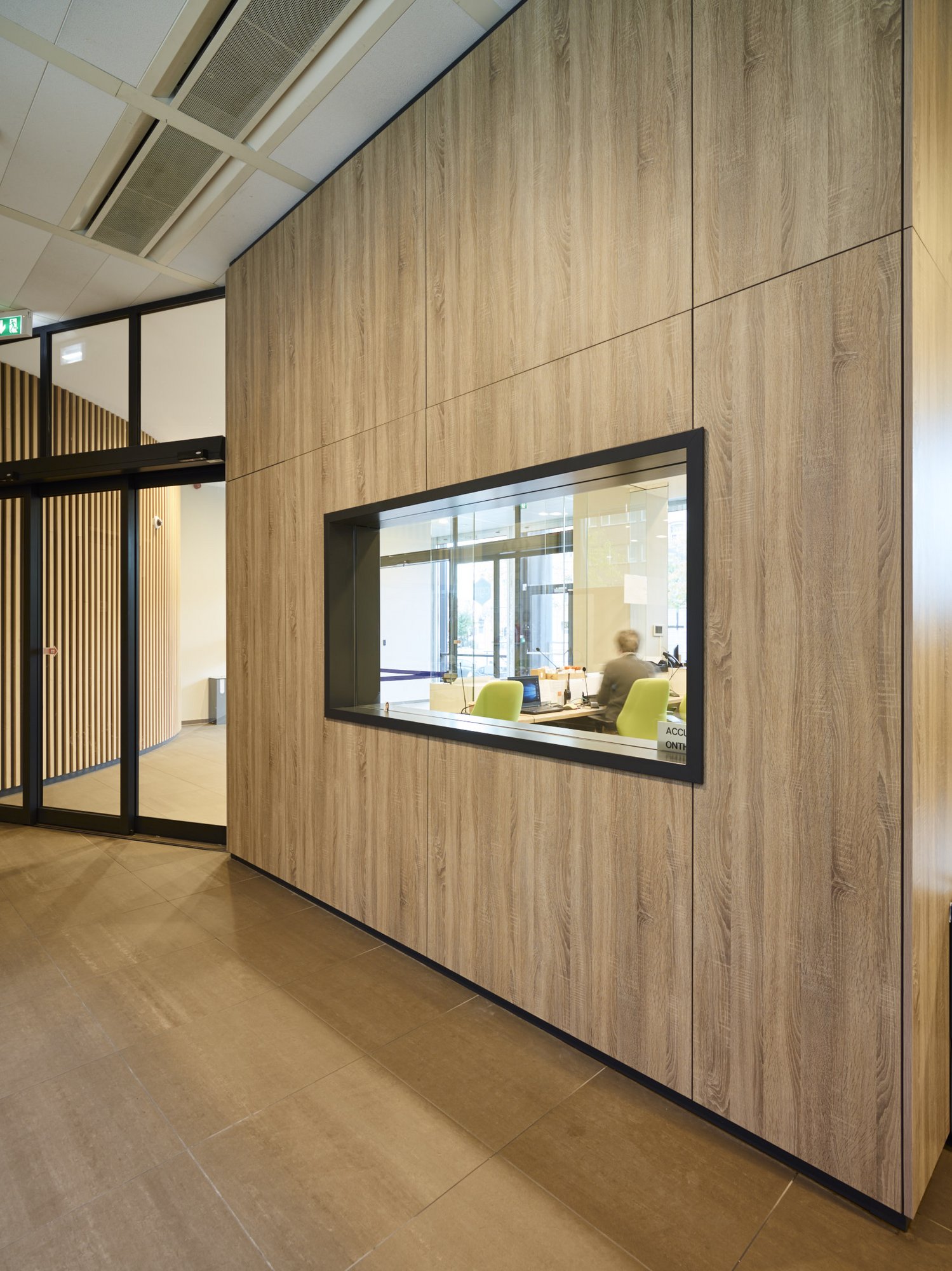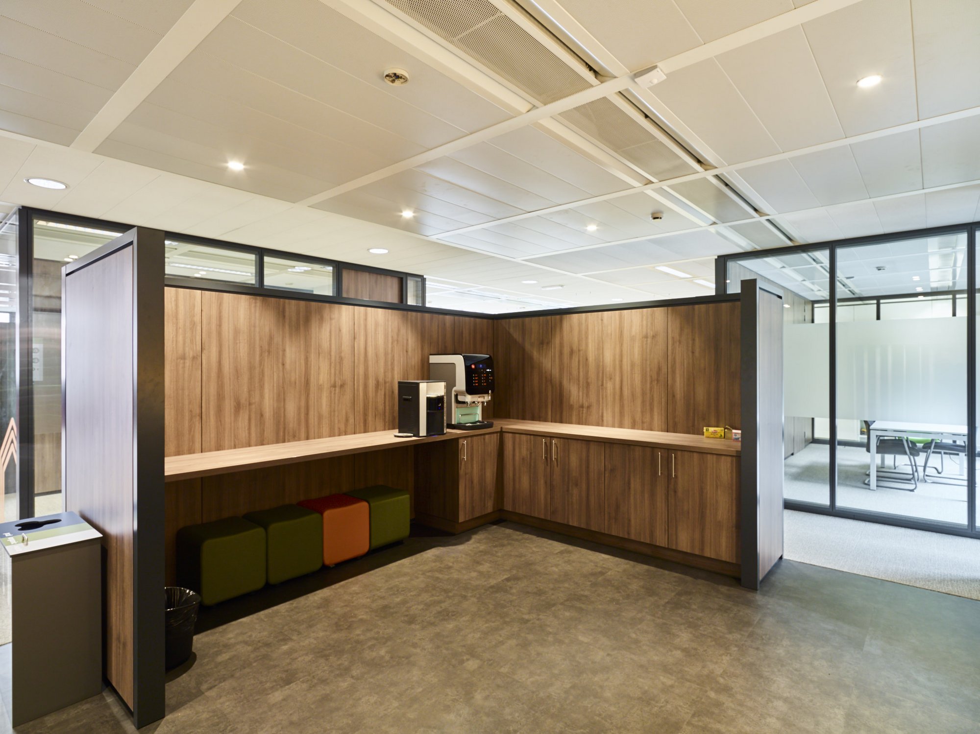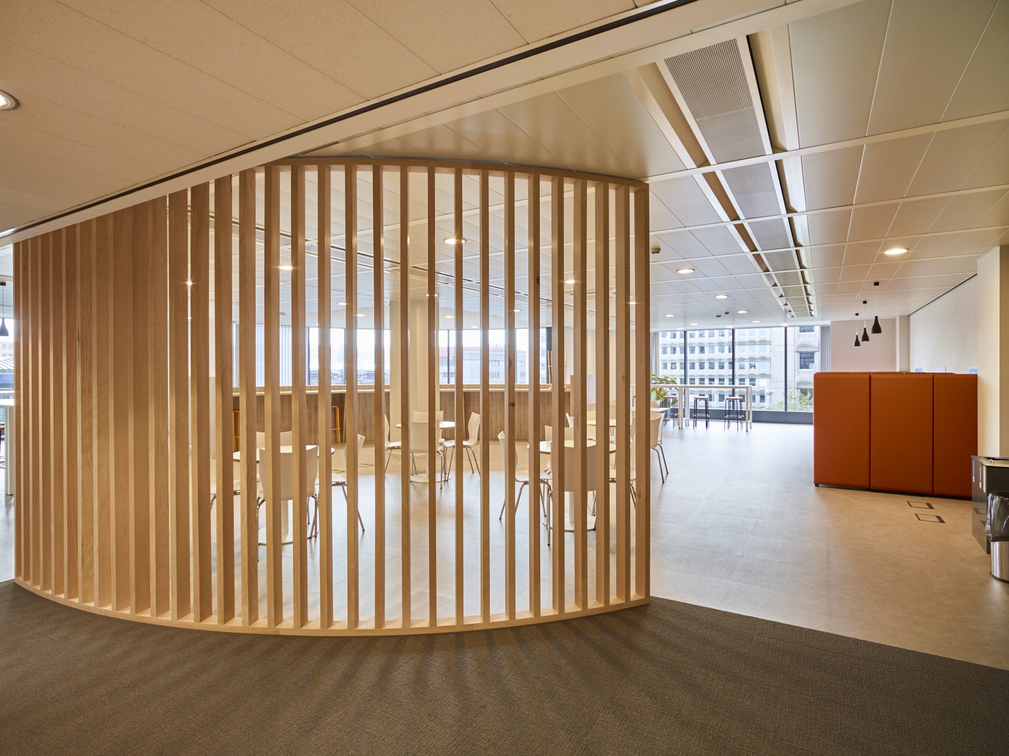 Totaalafwerking met verhoogde vloeren, zonwering, schilderwerken, vloerbekleding (tapijt en tegels), branddetectie, toegangscontrole, elektriciteit, databekabeling, HVAC, sanitair,