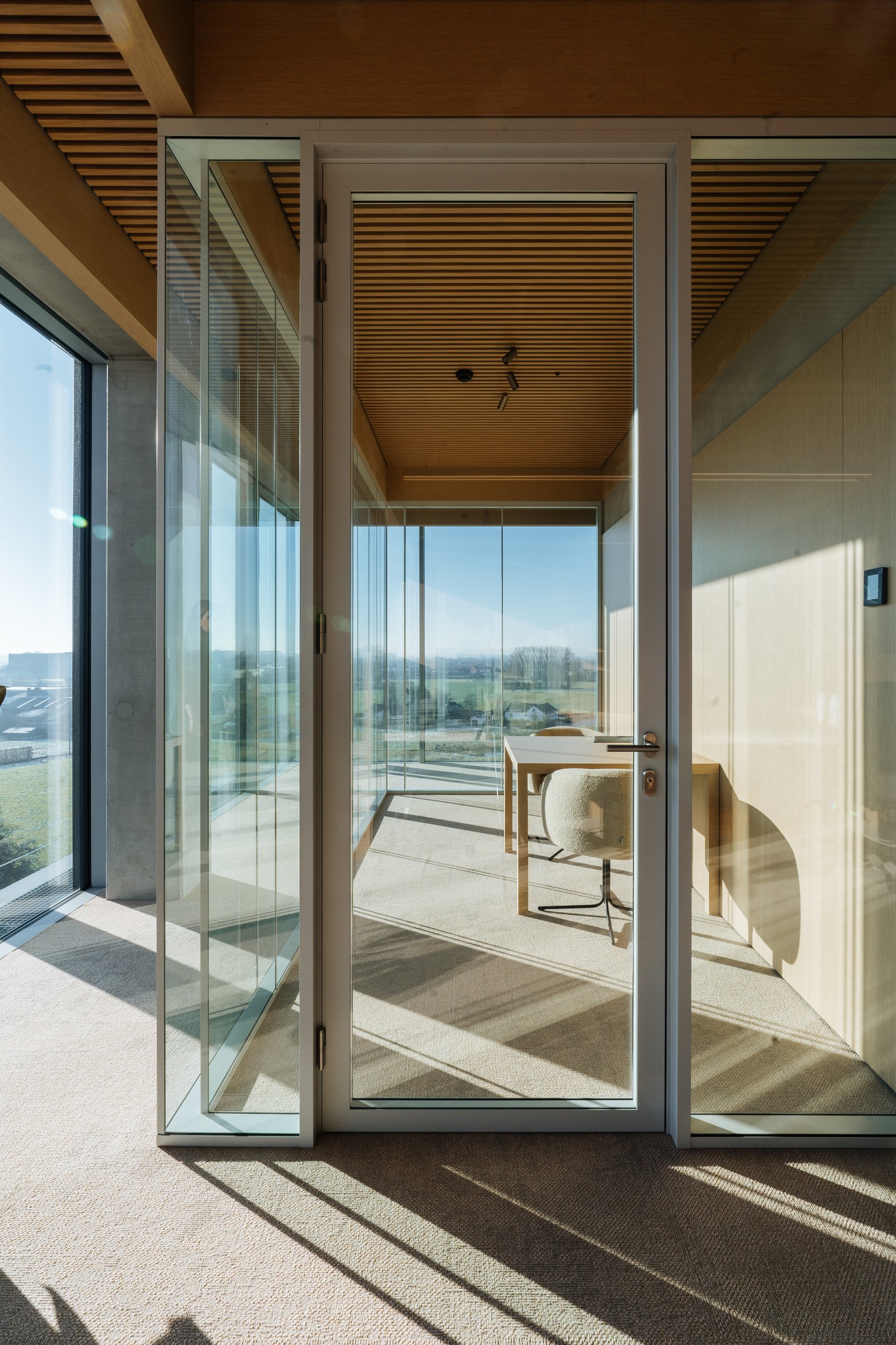 Glaswand met houten profielen