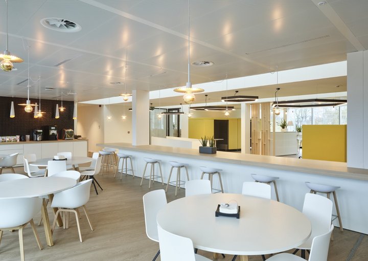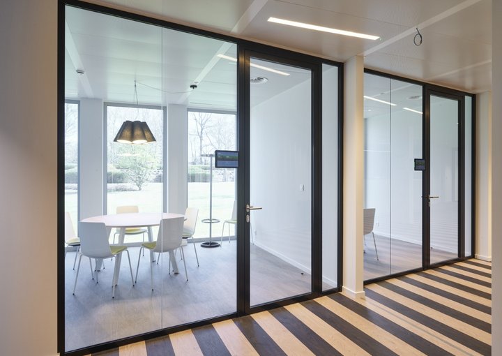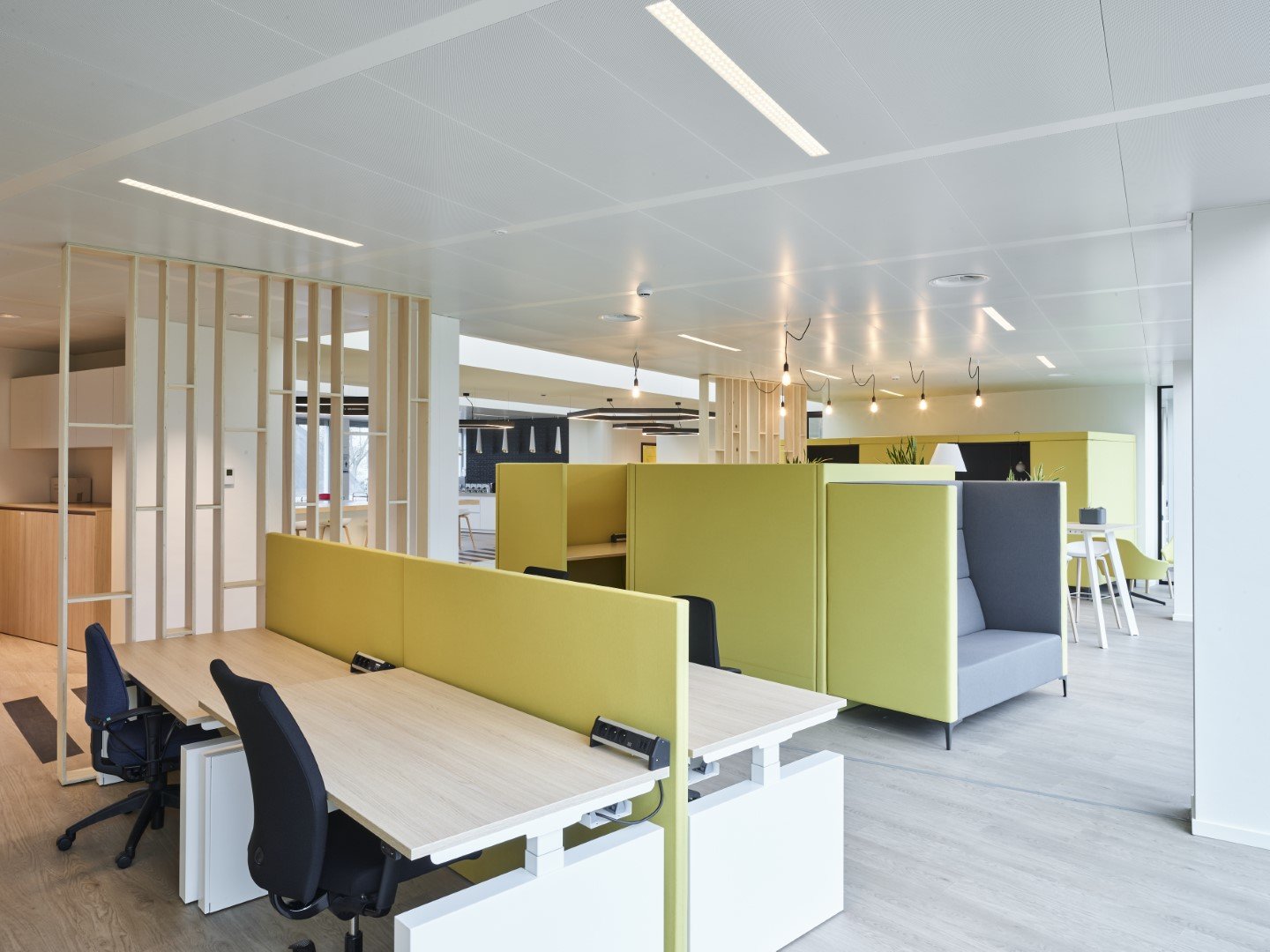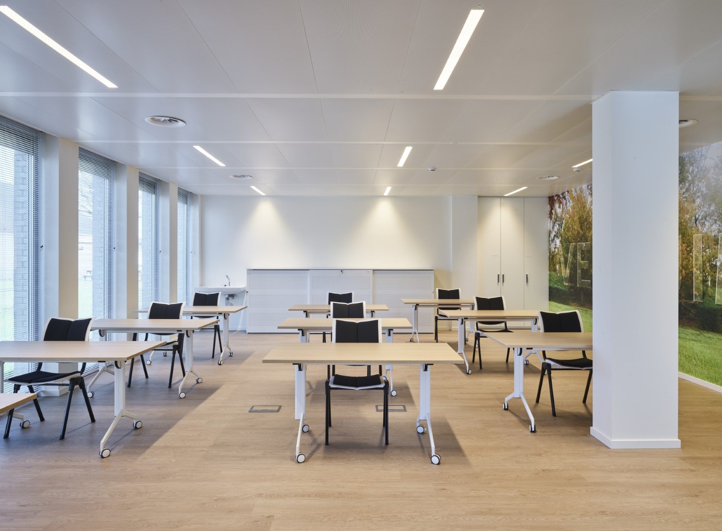 In de “activity based” werkplekken (open spaces, vergaderlokalen, overlegruimtes,....) werd grote aandacht besteed aan luchtkwaliteit, akoestiek,…o.a. door het gebruik van onze JB 4000 systeemwanden, JB DOOR deurgehelen en JB COOL klimaatplafonds.
