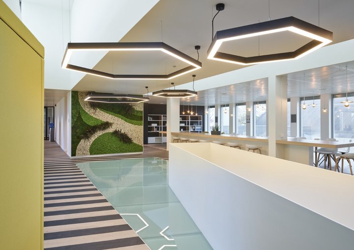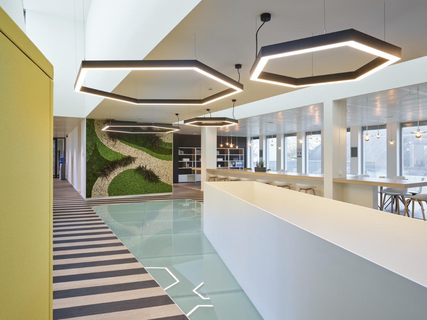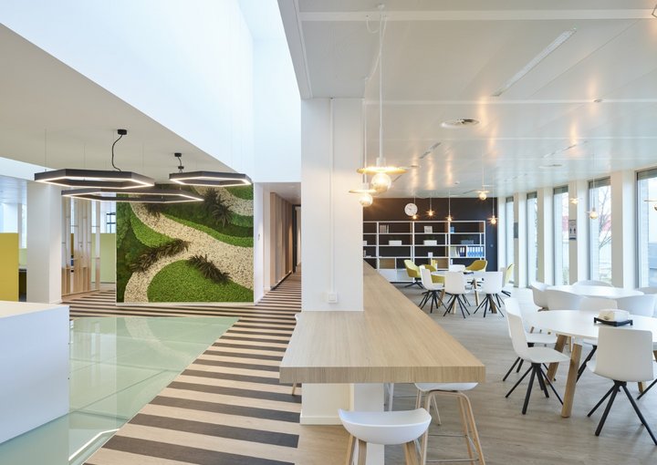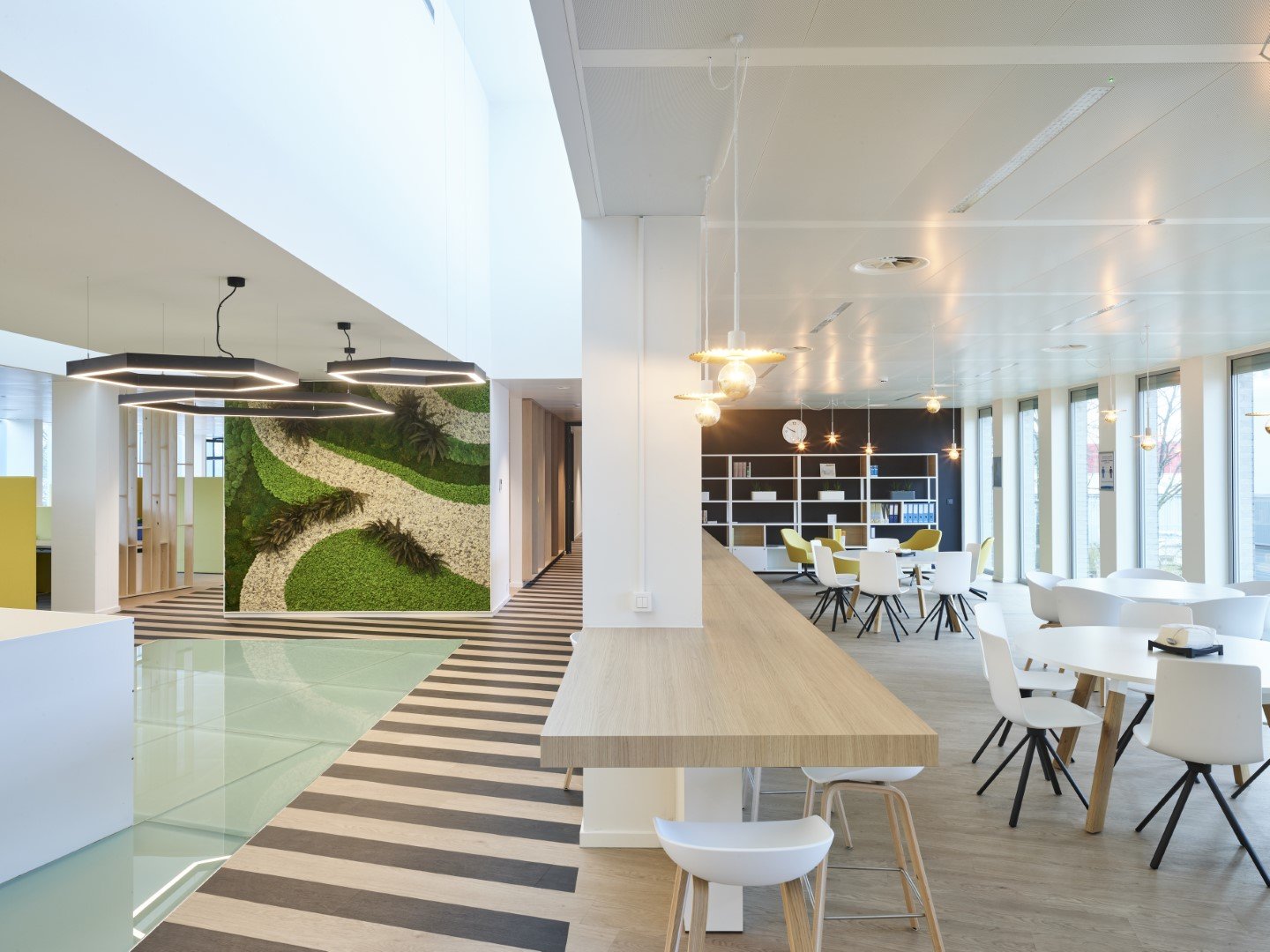 In de “activity based” werkplekken (open spaces, vergaderlokalen, overlegruimtes,....) werd grote aandacht besteed aan luchtkwaliteit, akoestiek,…o.a. door het gebruik van onze JB 4000 systeemwanden, JB DOOR deurgehelen en JB COOL klimaatplafonds.
