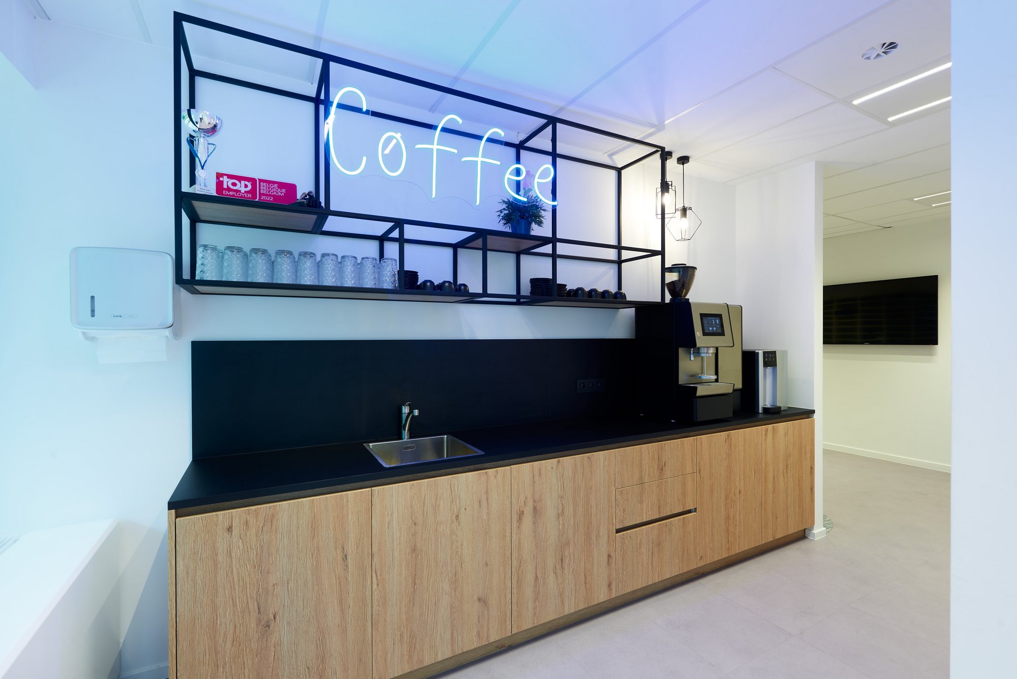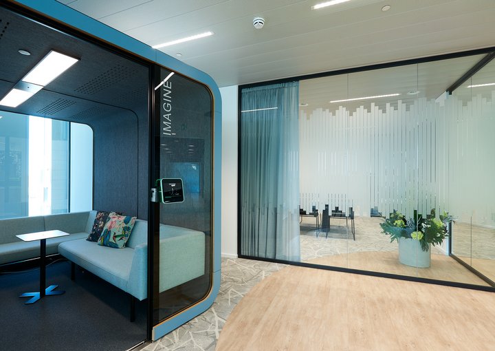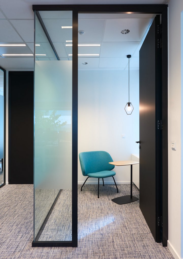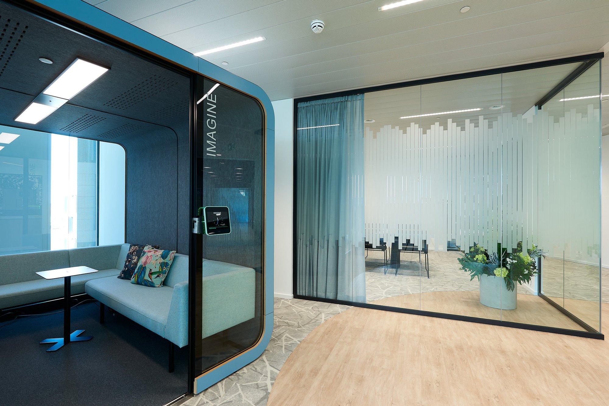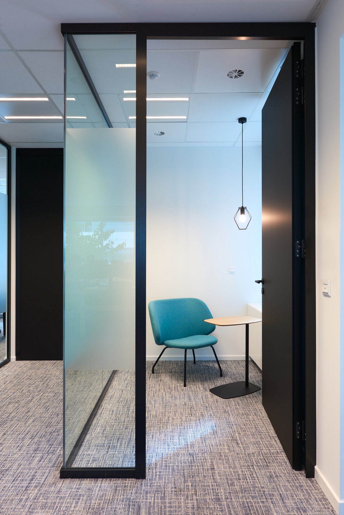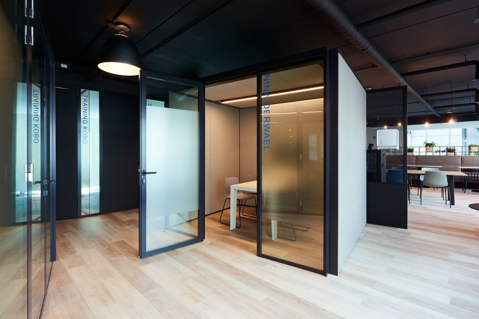 Voor hun kantoor in het Pegasus Park in Diegem deed KONE ook beroep op Beddeleem. Hier werden eveneens verschillende inrichtingswerken verzorgd. Naast onze JB systeemwanden werden er ook JB QBE’s Box-in-Box geplaatst.