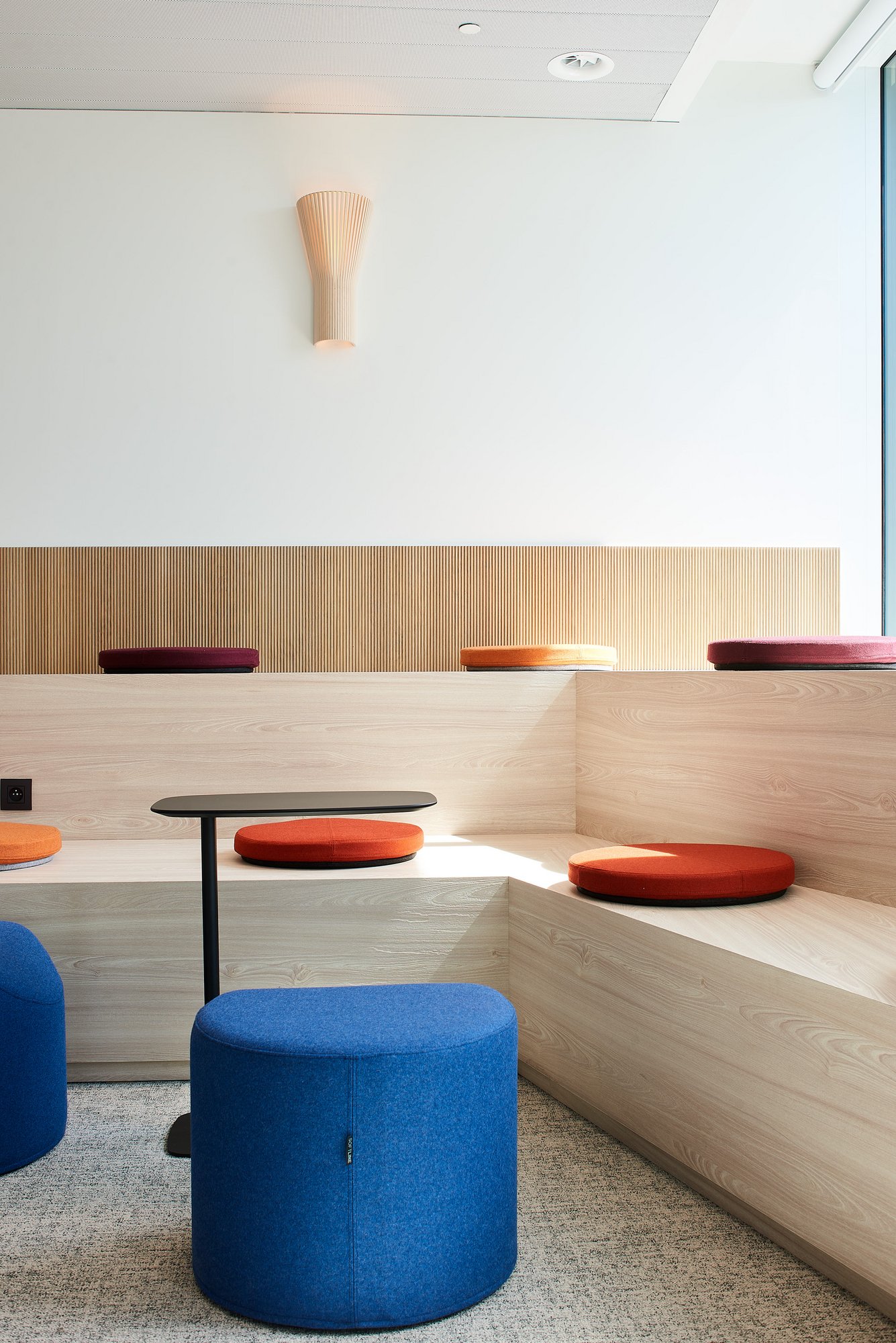 Naast de milieuvriendelijke kenmerken is het hoofdkantoor van KONE ook ontworpen met het oog op comfort en gemak. Beddeleem verzorgde de totale inrichting van de open kantoorruimtes, de collaboratieve werkplekken en de vele vergaderruimtes die teamwork en communicatie bevorderen. Het ruime atrium is een ontmoetingsplaats voor medewerkers en gasten, evenals een café en een fitnessruimte.