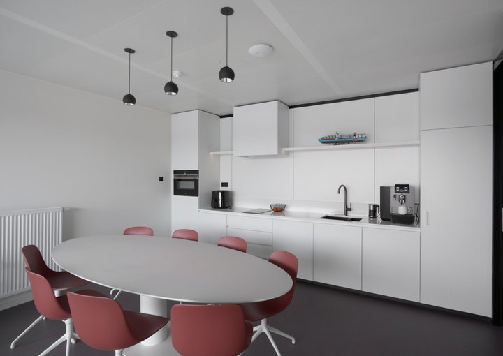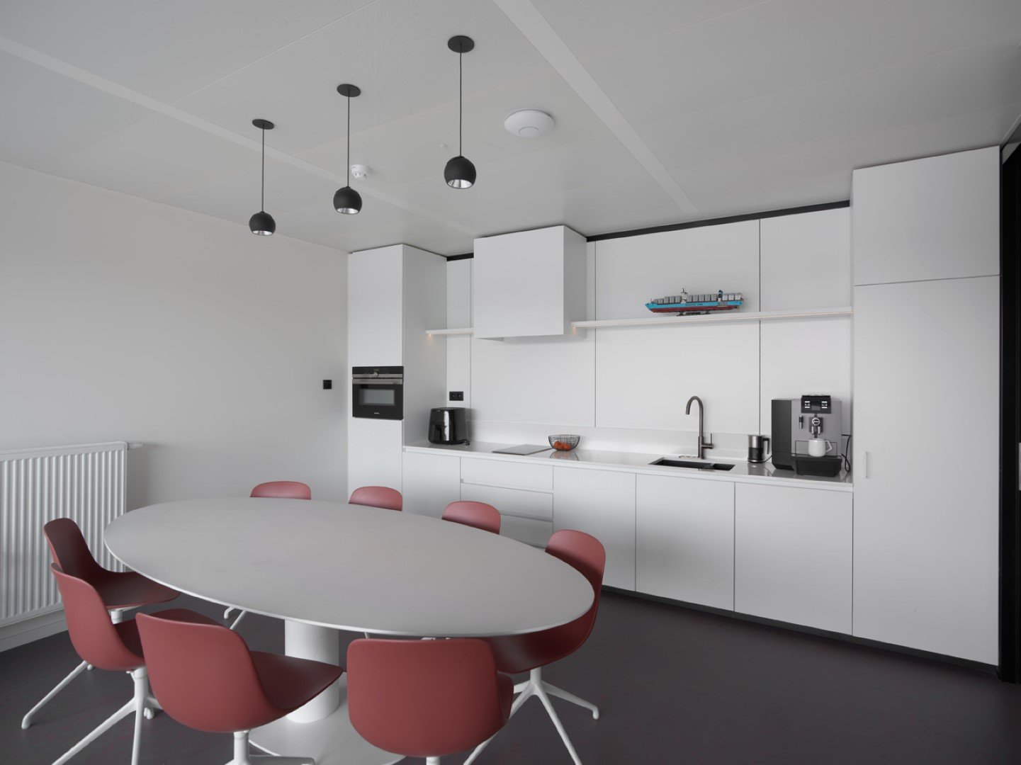 De nieuwbouw omvat 4 bouwlagen, een loods en eveneens een geïntegreerde bedrijfswoning. Opvallend in dit project zijn de op maat gemaakte containerwandpanelen.