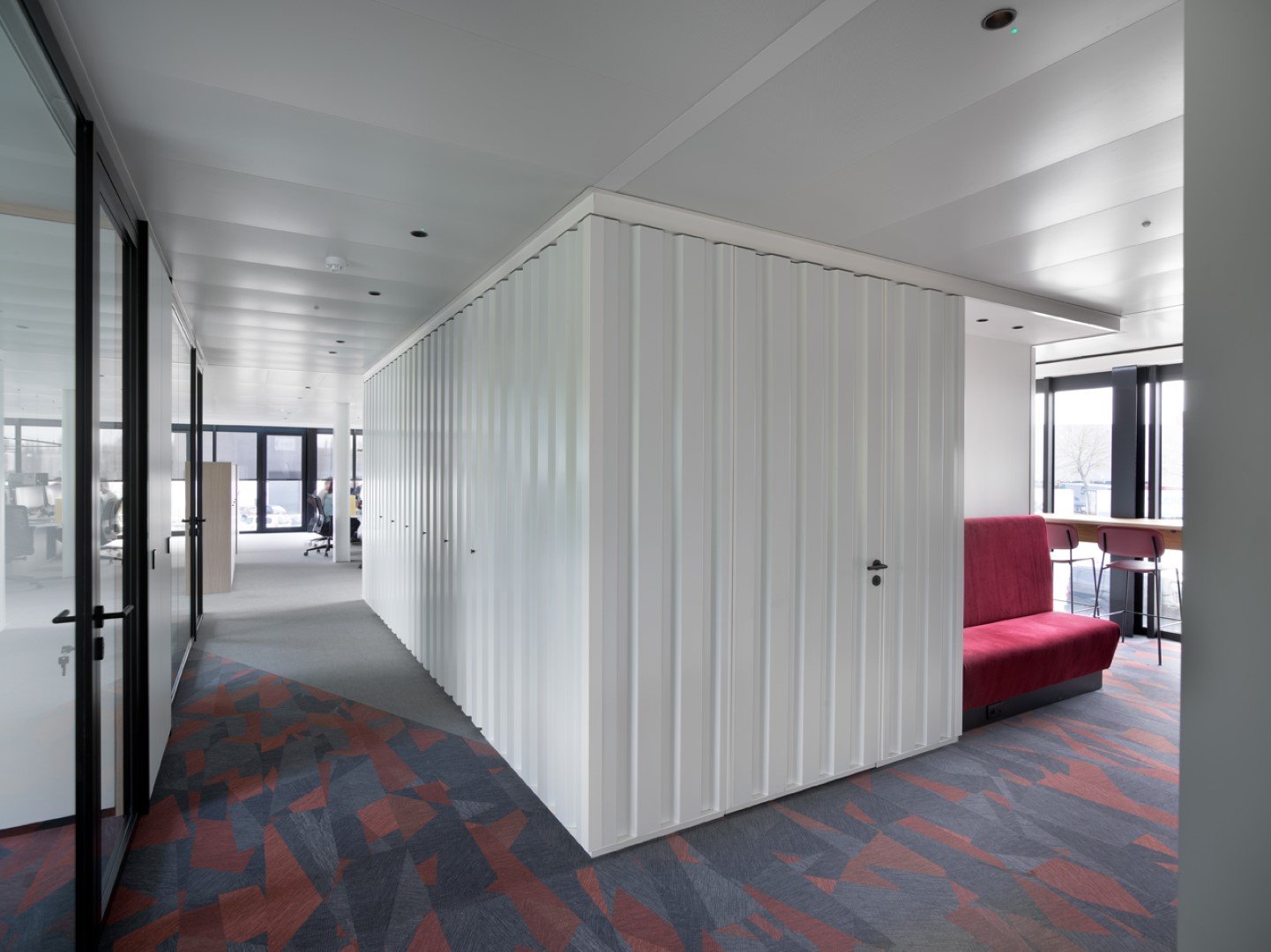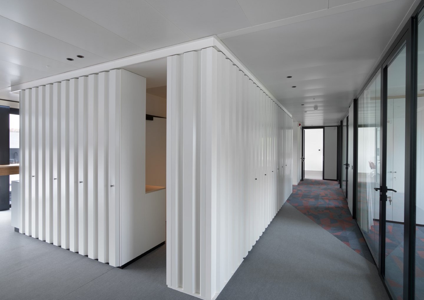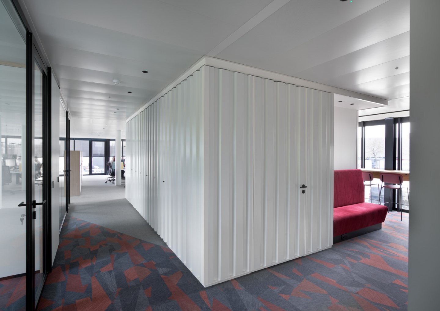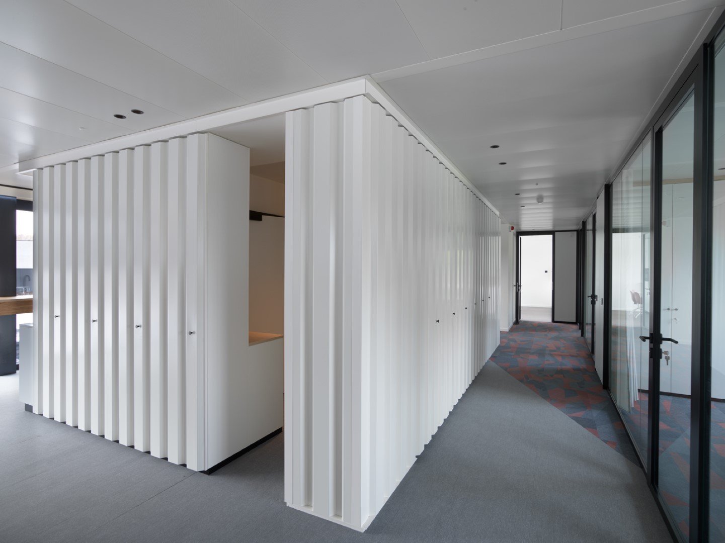 Voor dit project werd een totaalconcept neergezet. Naast onze systeemwanden (JB 2000 en JB 4000), gipskartonwanden en JB COOL klimaatplafonds stond Beddeleem ook in voor de vloerafwerking (tapijt, vinyl en tegels), het meubilair uit onze collecties JB LOCKERS, JB STORE en JB DESK, het maatmeubilair, schilderwerken...