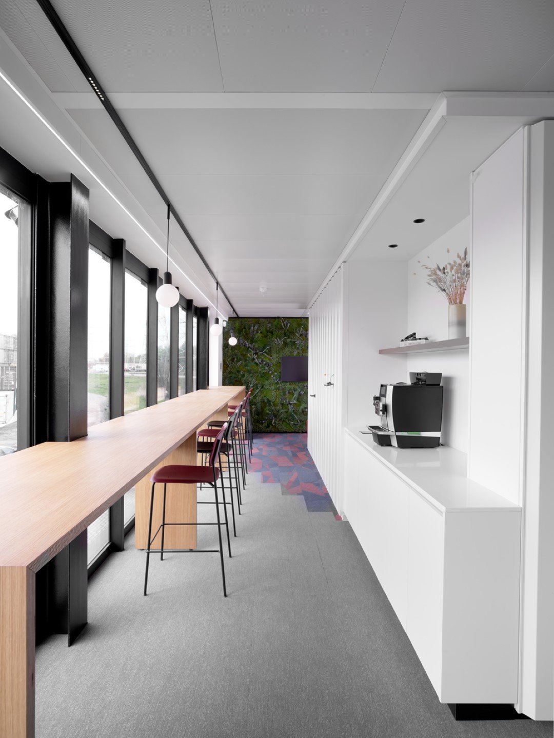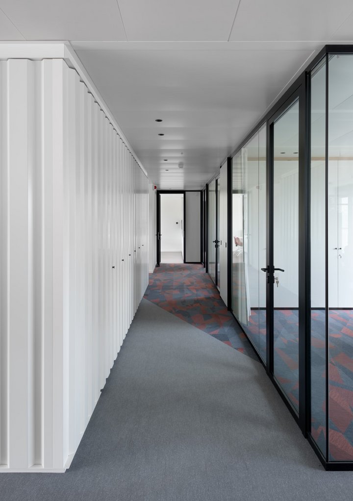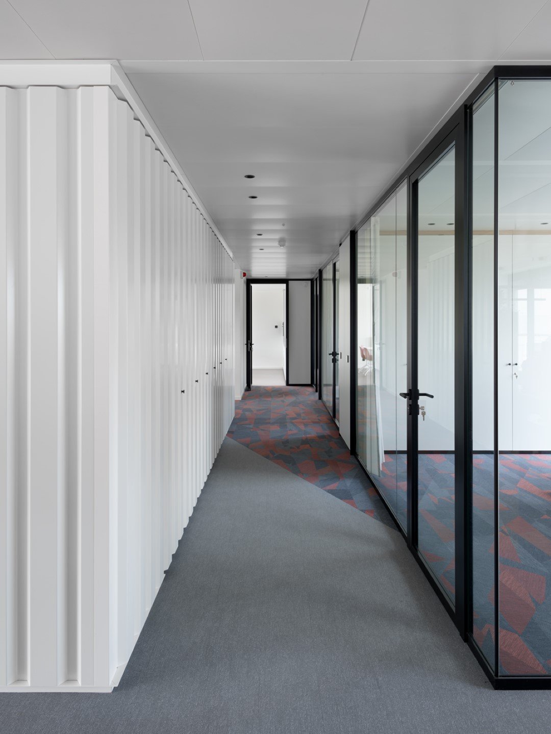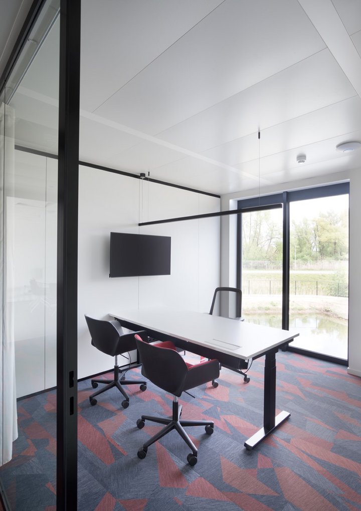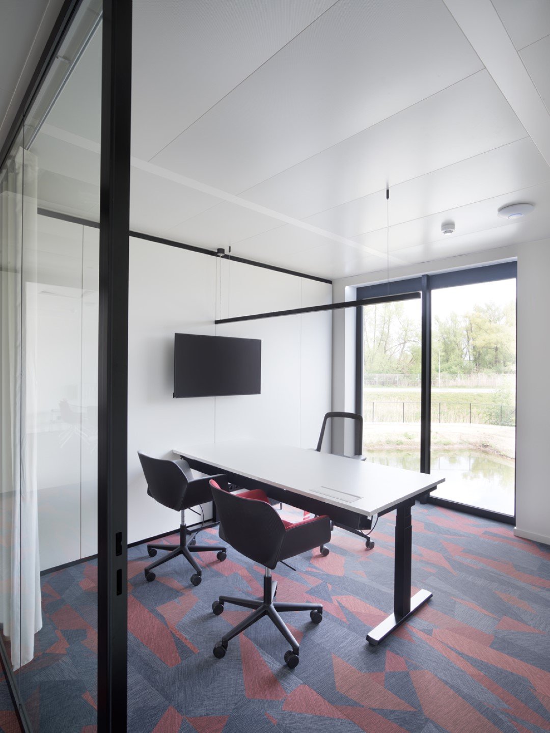 Voor dit project werd een totaalconcept neergezet. Naast onze systeemwanden (JB 2000 en JB 4000), gipskartonwanden en JB COOL klimaatplafonds stond Beddeleem ook in voor de vloerafwerking (tapijt, vinyl en tegels), het meubilair uit onze collecties JB LOCKERS, JB STORE en JB DESK, het maatmeubilair, schilderwerken...