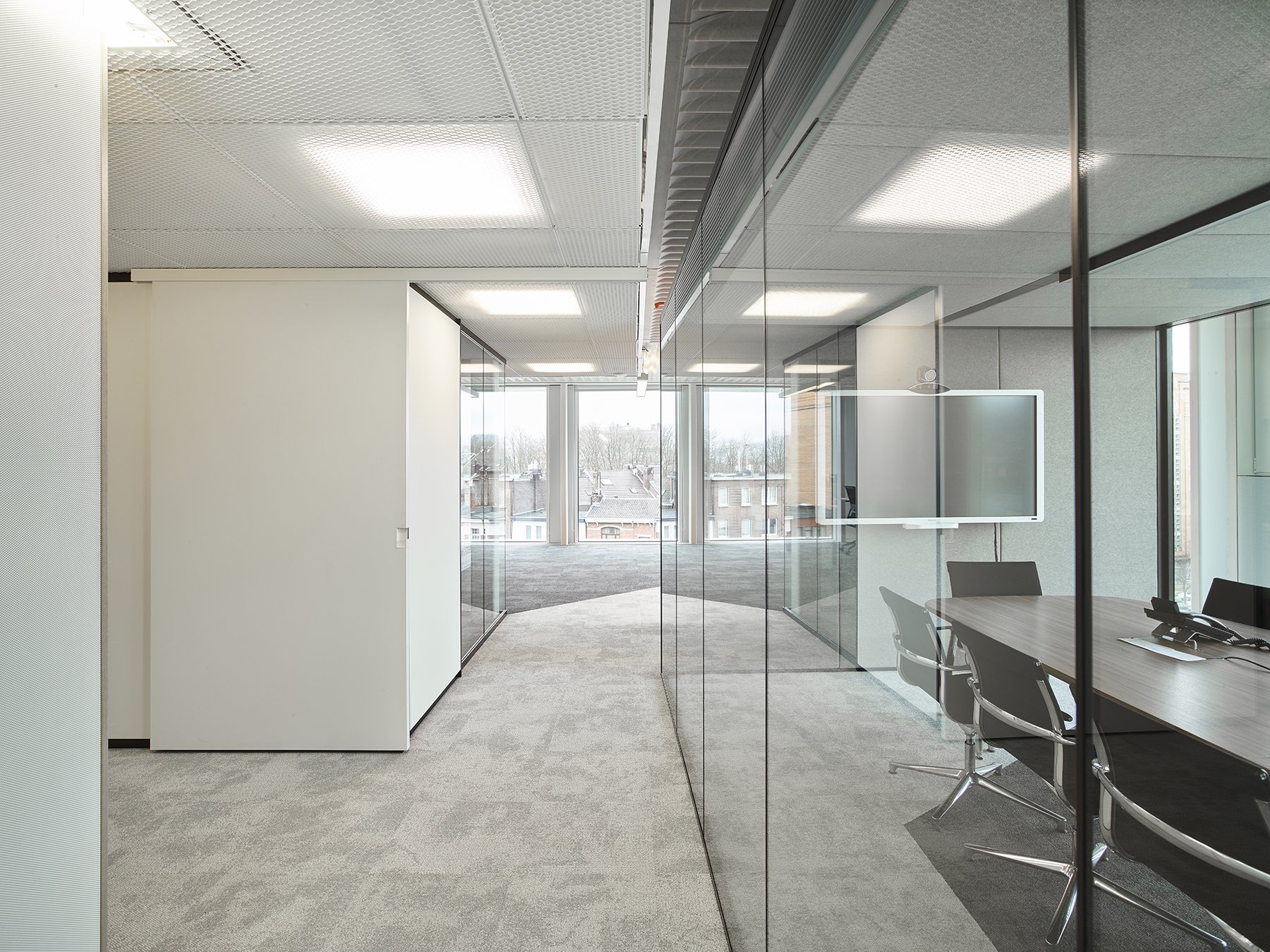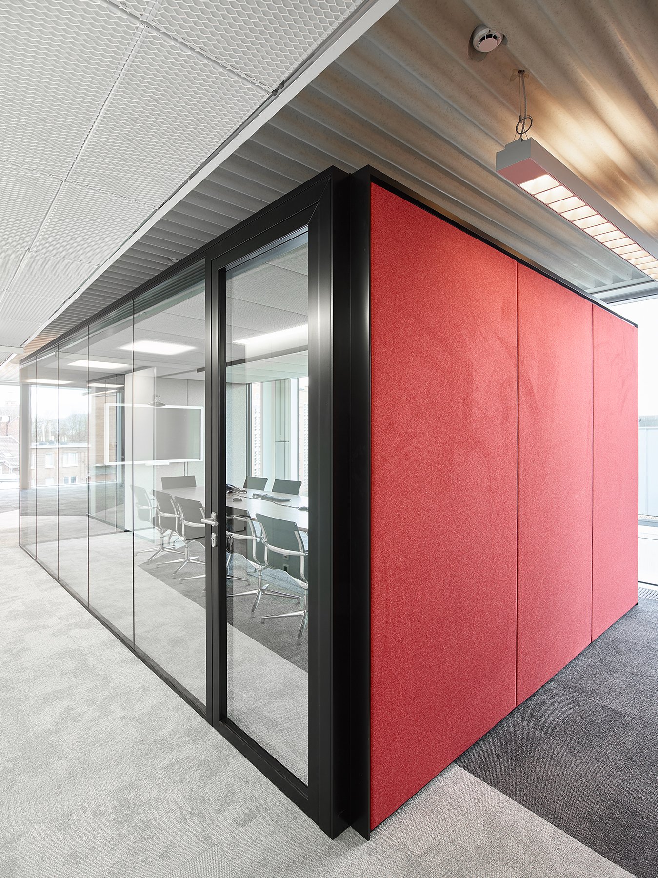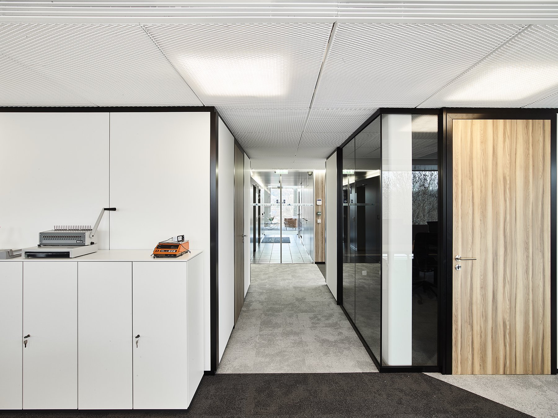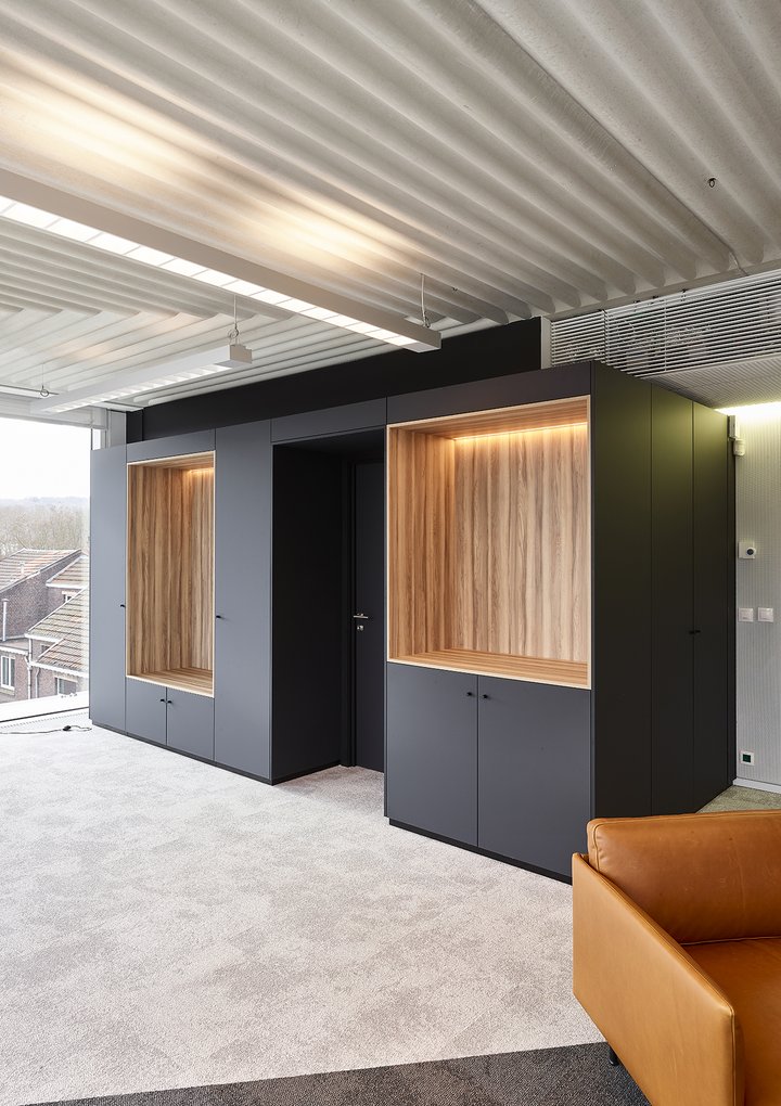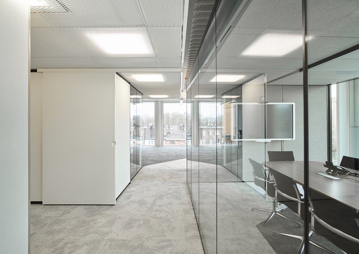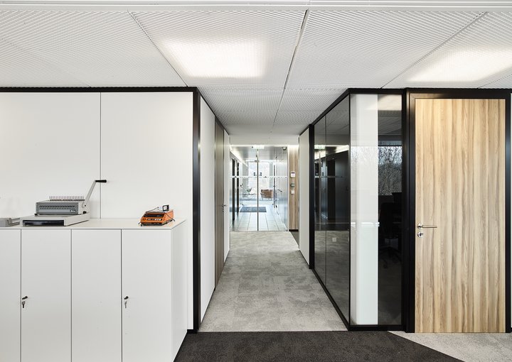 De ruimte is verder ingedeeld met het vol houten wandsysteem JB 2000 en de enkele glas wand JB 4000.