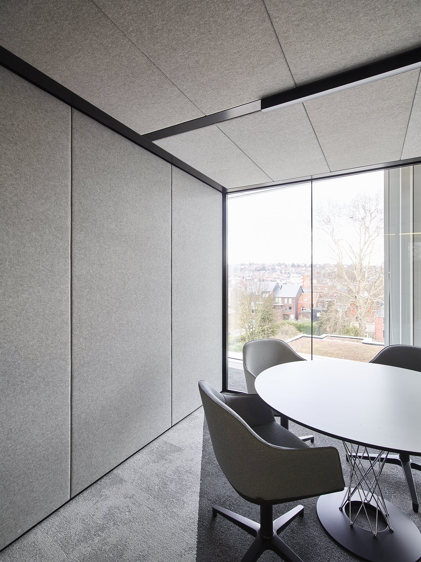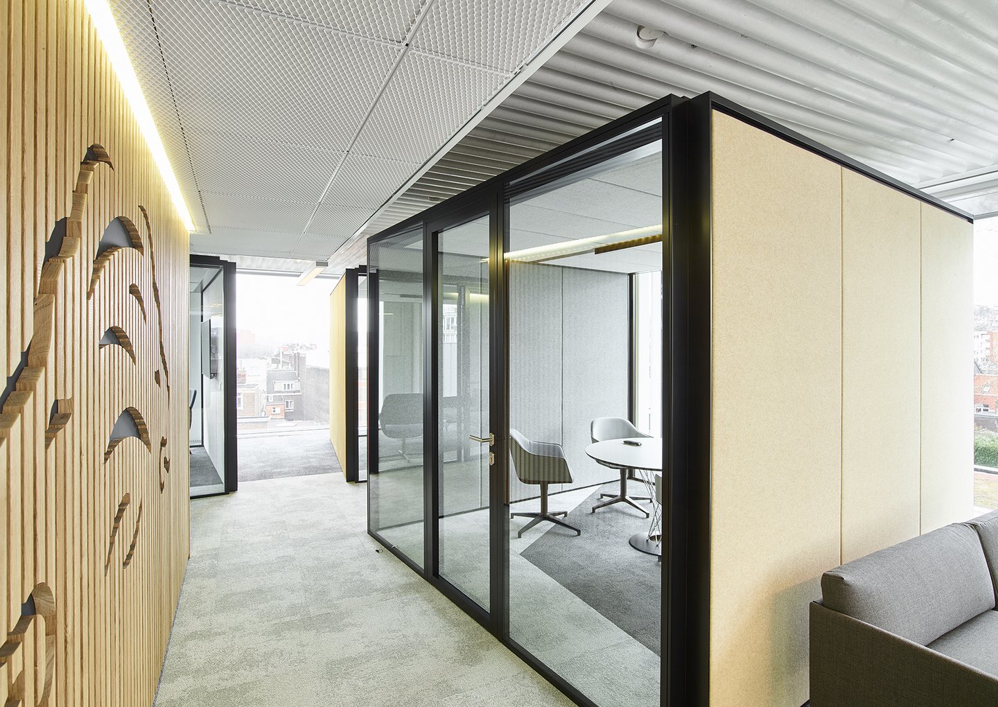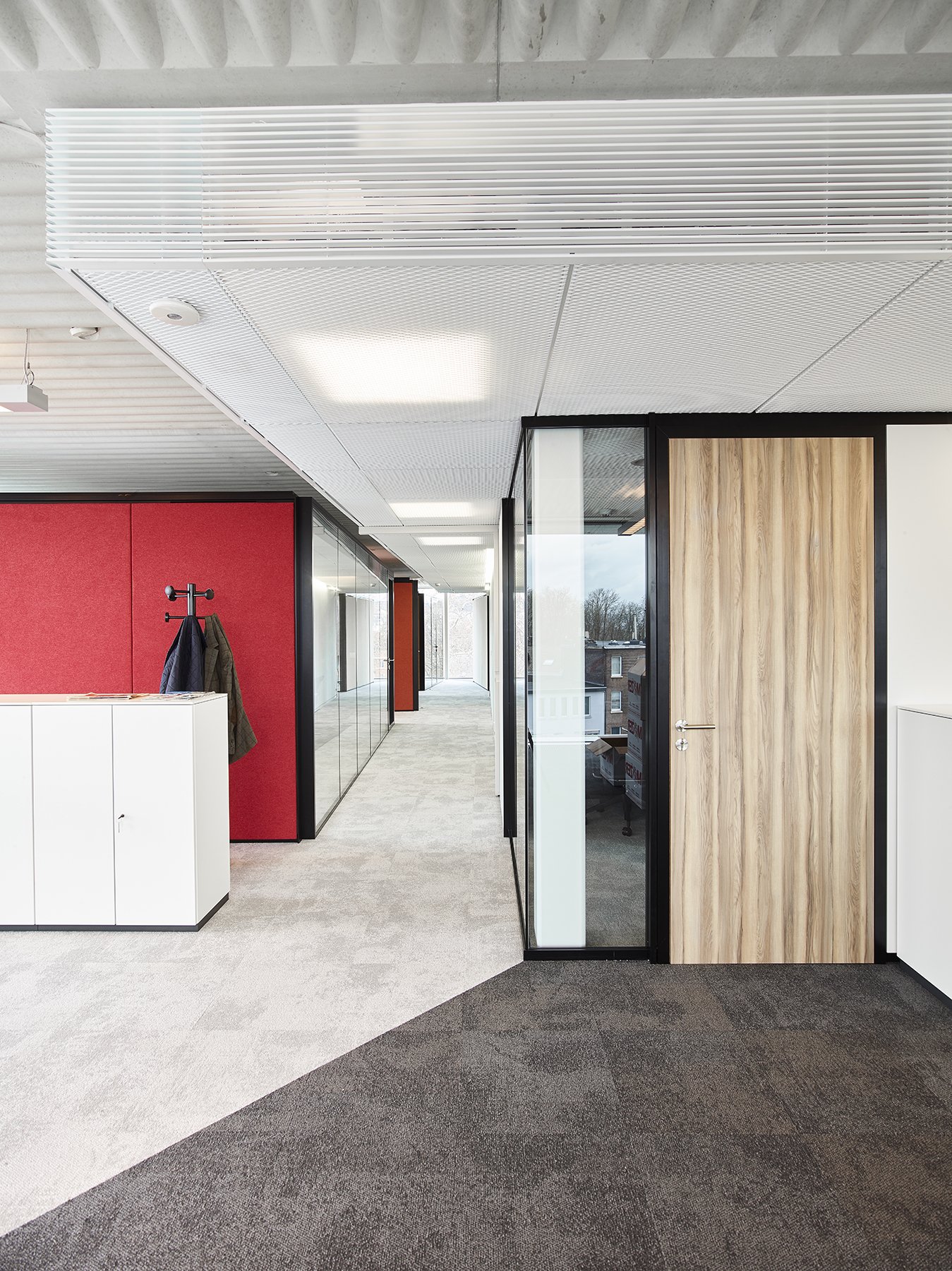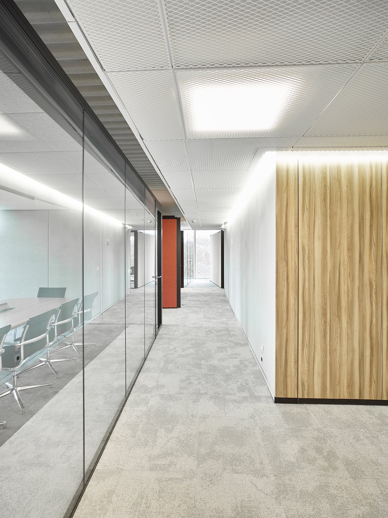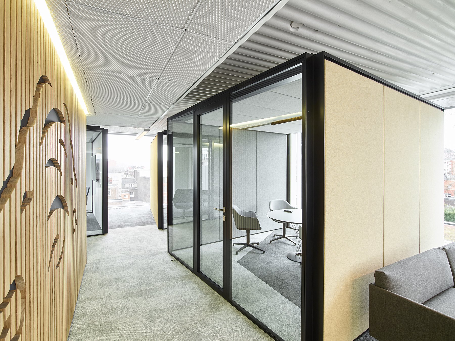 De ruimte is verder ingedeeld met het vol houten wandsysteem JB 2000 en de enkele glas wand JB 4000.