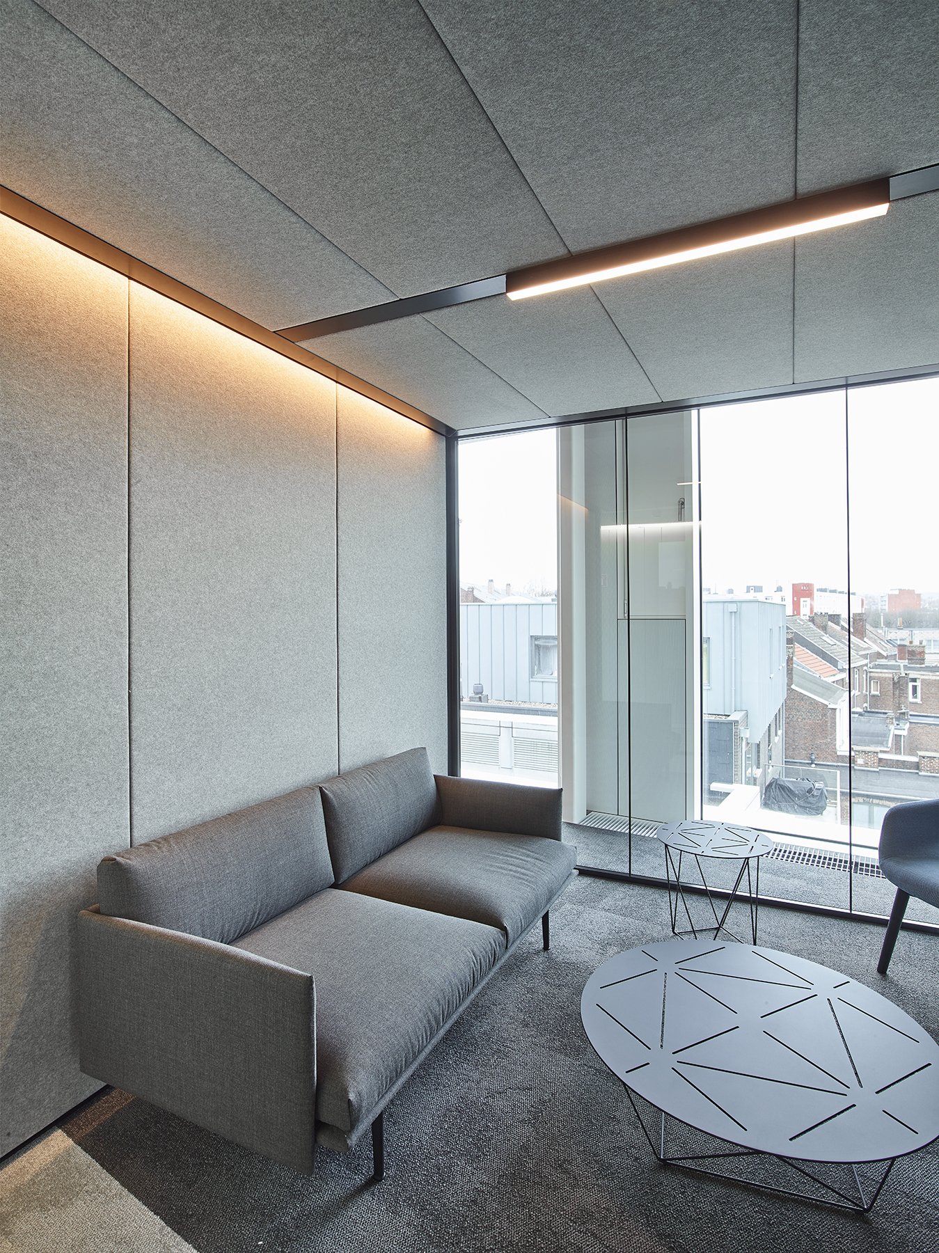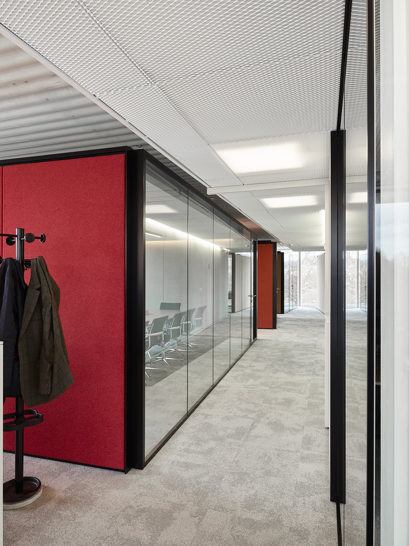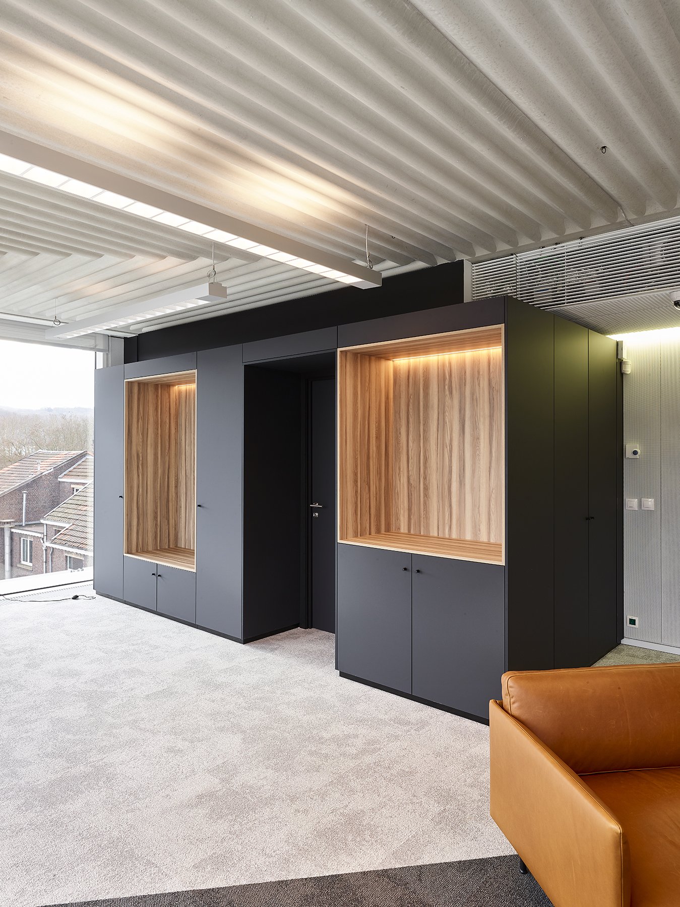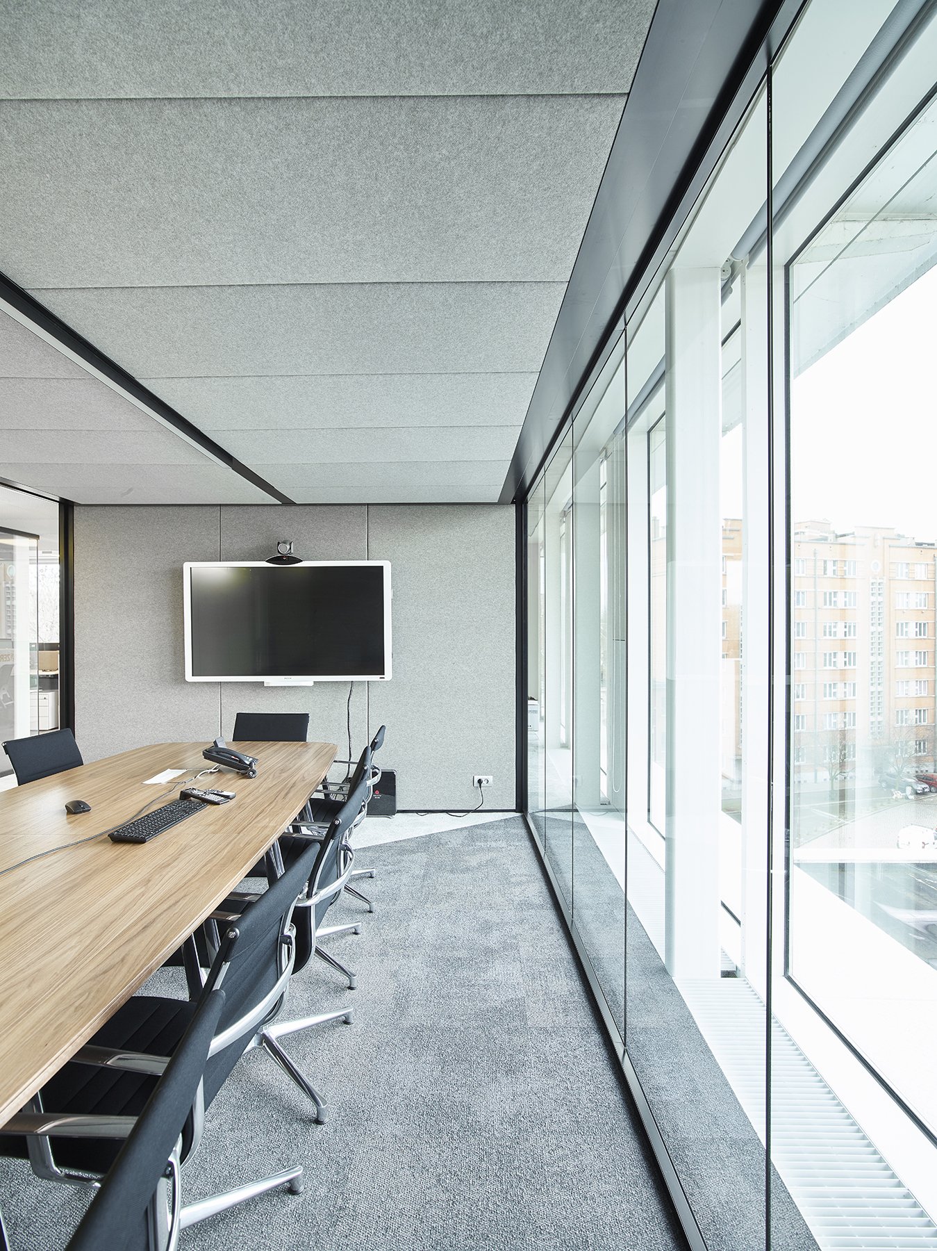 De ruimte is verder ingedeeld met het vol houten wandsysteem JB 2000 en de enkele glas wand JB 4000.