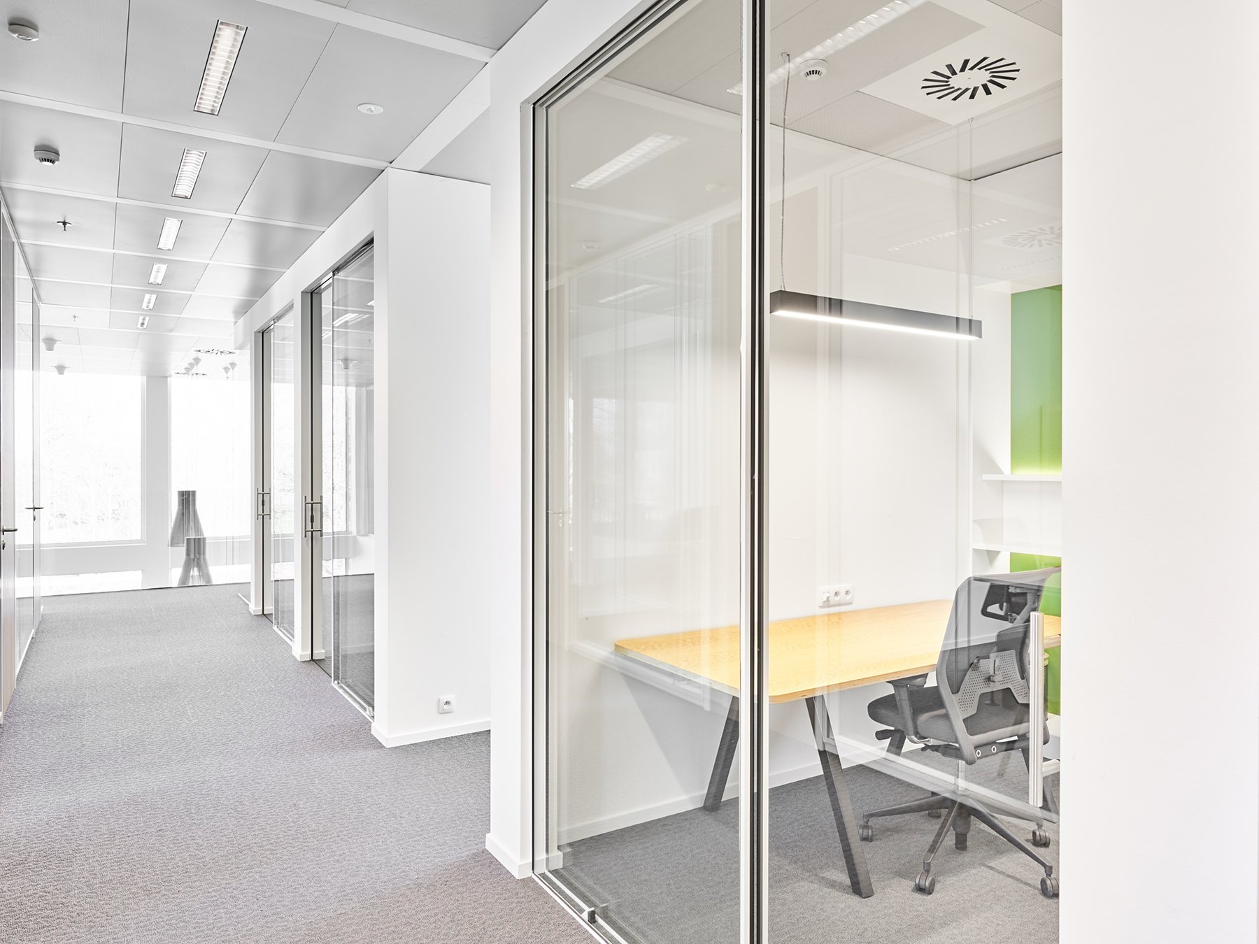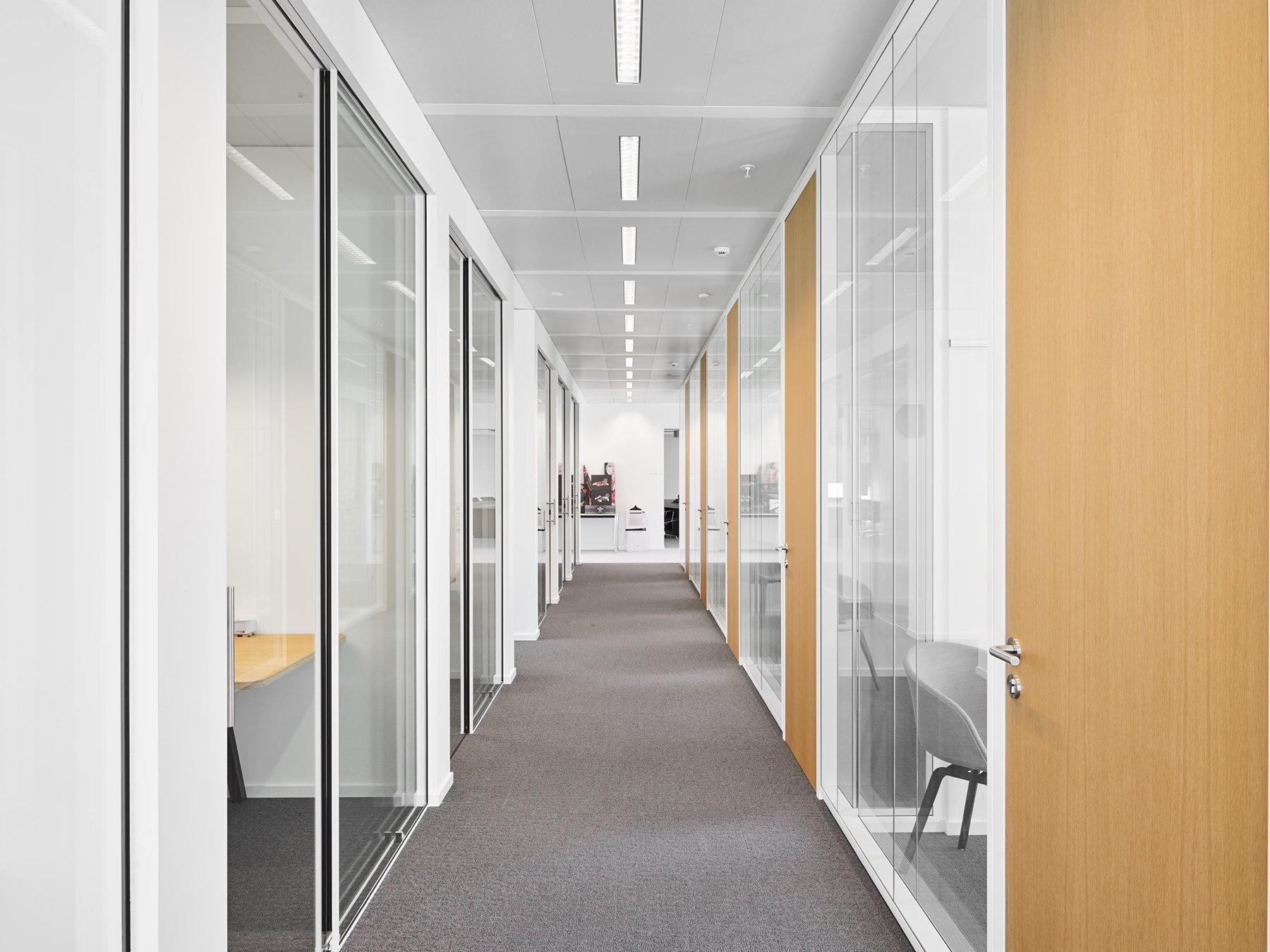 Glazen schuifdeuren in een dubbel beglaasd wandsysteem tegenover het dubbel beglaasd wandsysteem JB SKY.