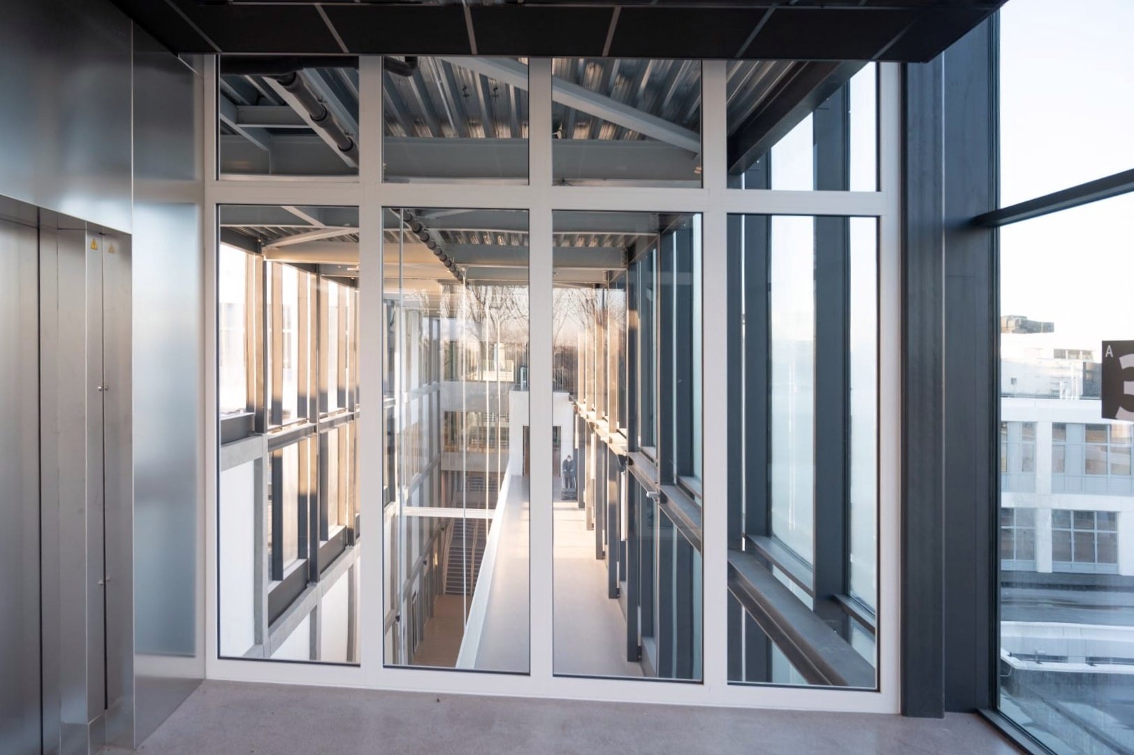 De nieuwbouw van de technische school voor VTI Brugge, met een totale oppervlakte van 17.500 m², biedt plaats aan ateliers en klaslokalen voor de afdelingen mechanica, elektriciteit, garage, carrosserie, theoretisch technische richtingen en de bijbehorende 1ste graad, een refter en een sportzaal, verspreid over 4 verdiepingen.